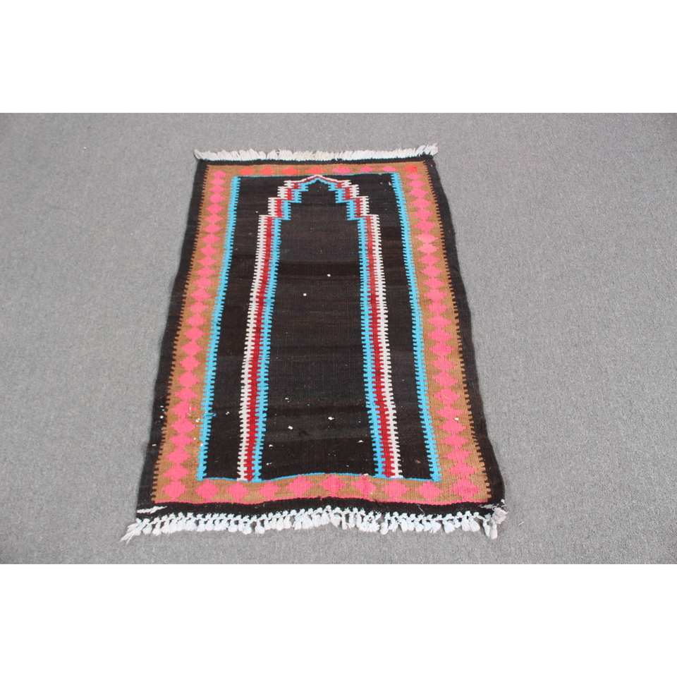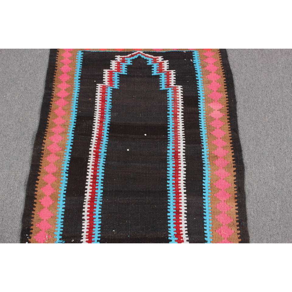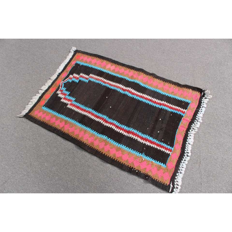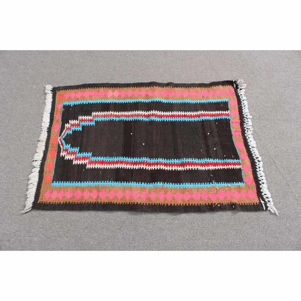Turkish Kilim Rug 2.5x3.37 ft, Brown Pink Bordered Wool Vintage Rug