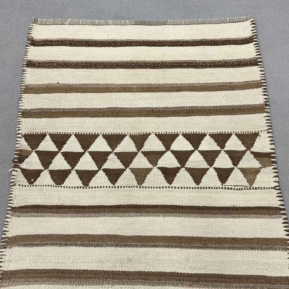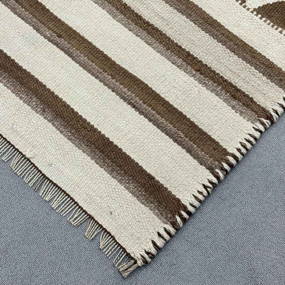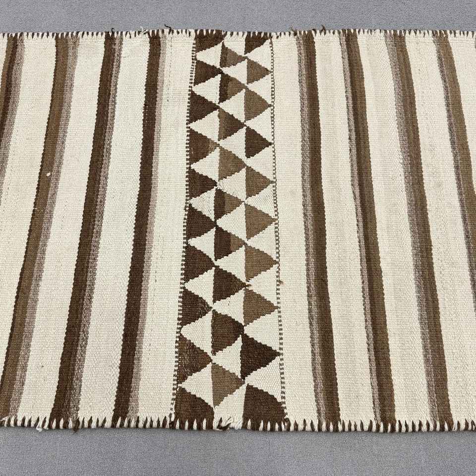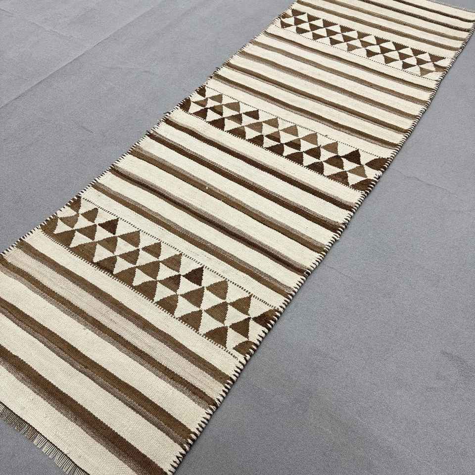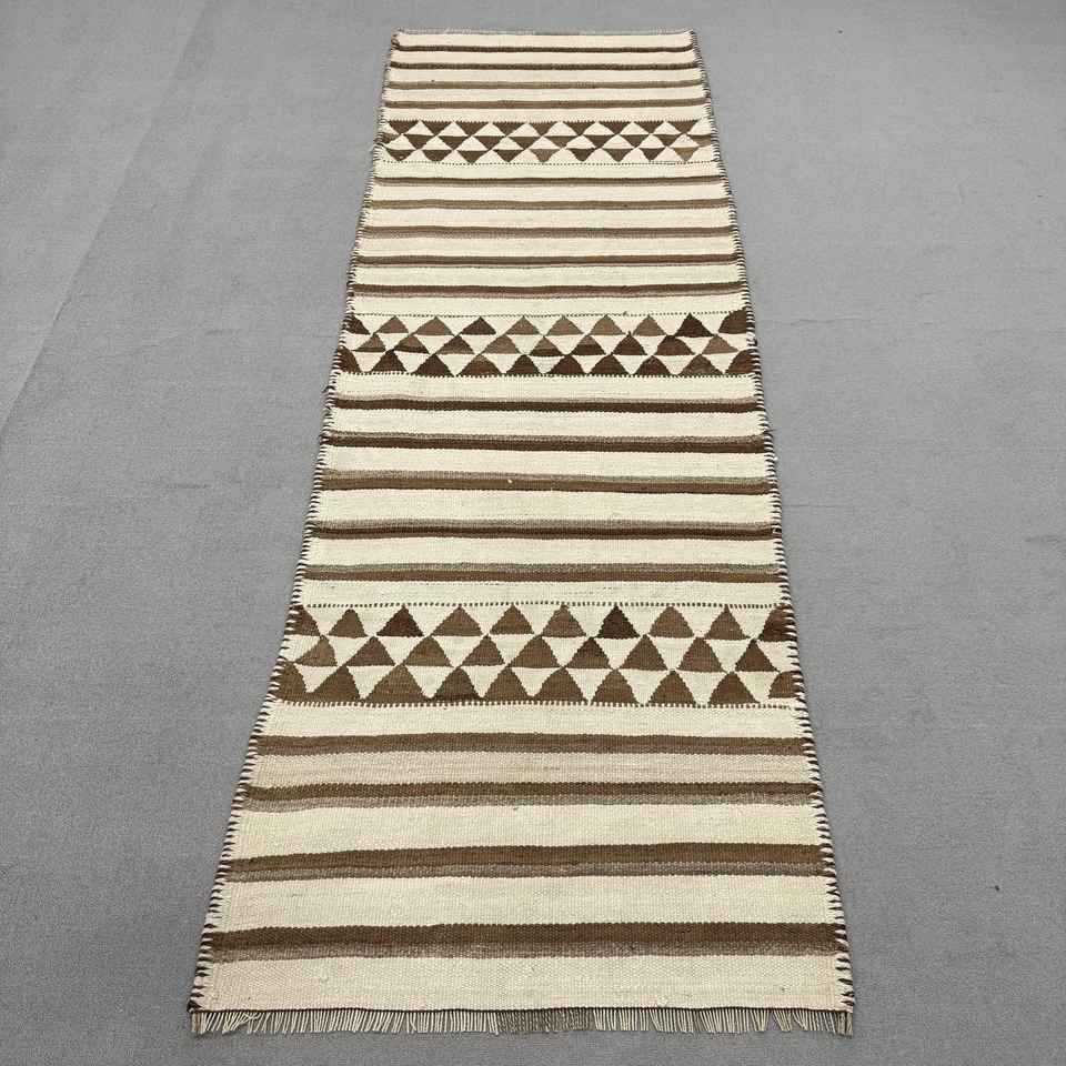 Turkish Kilim Runner Rug 3.2x9.4 ft (96x285 cm), Vintage Brown Floral Wool Rug