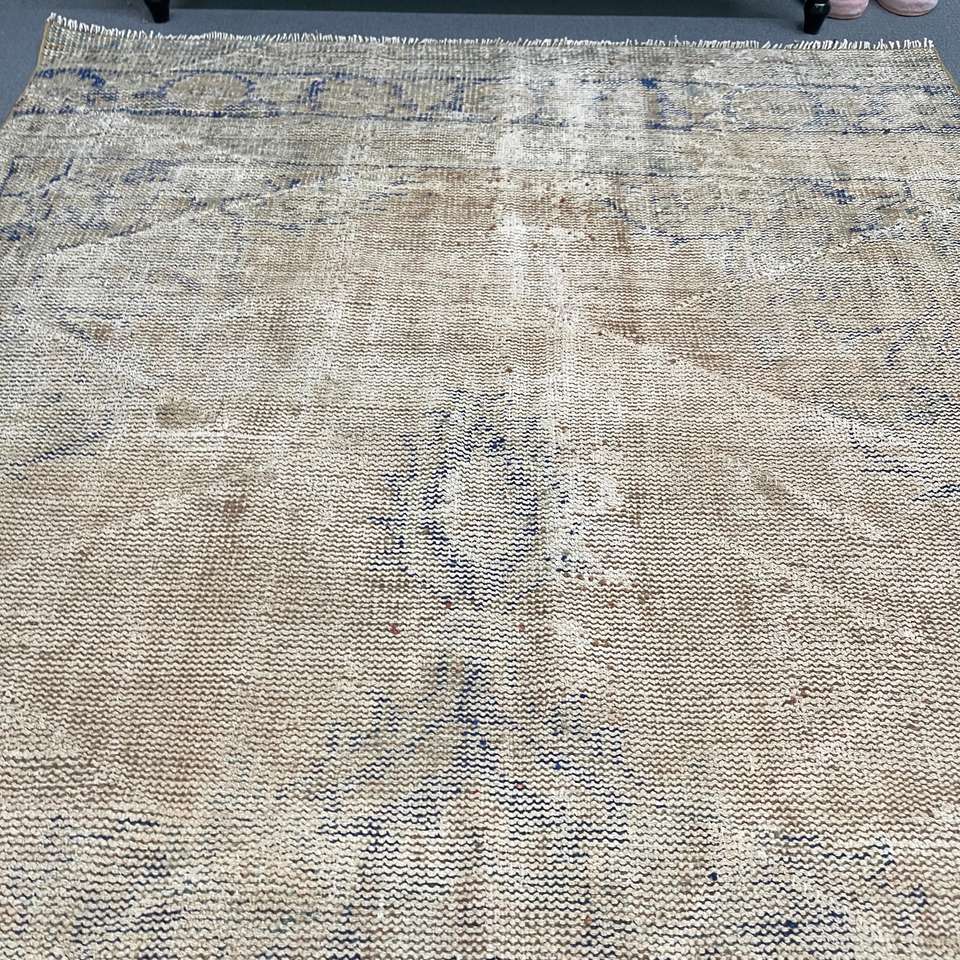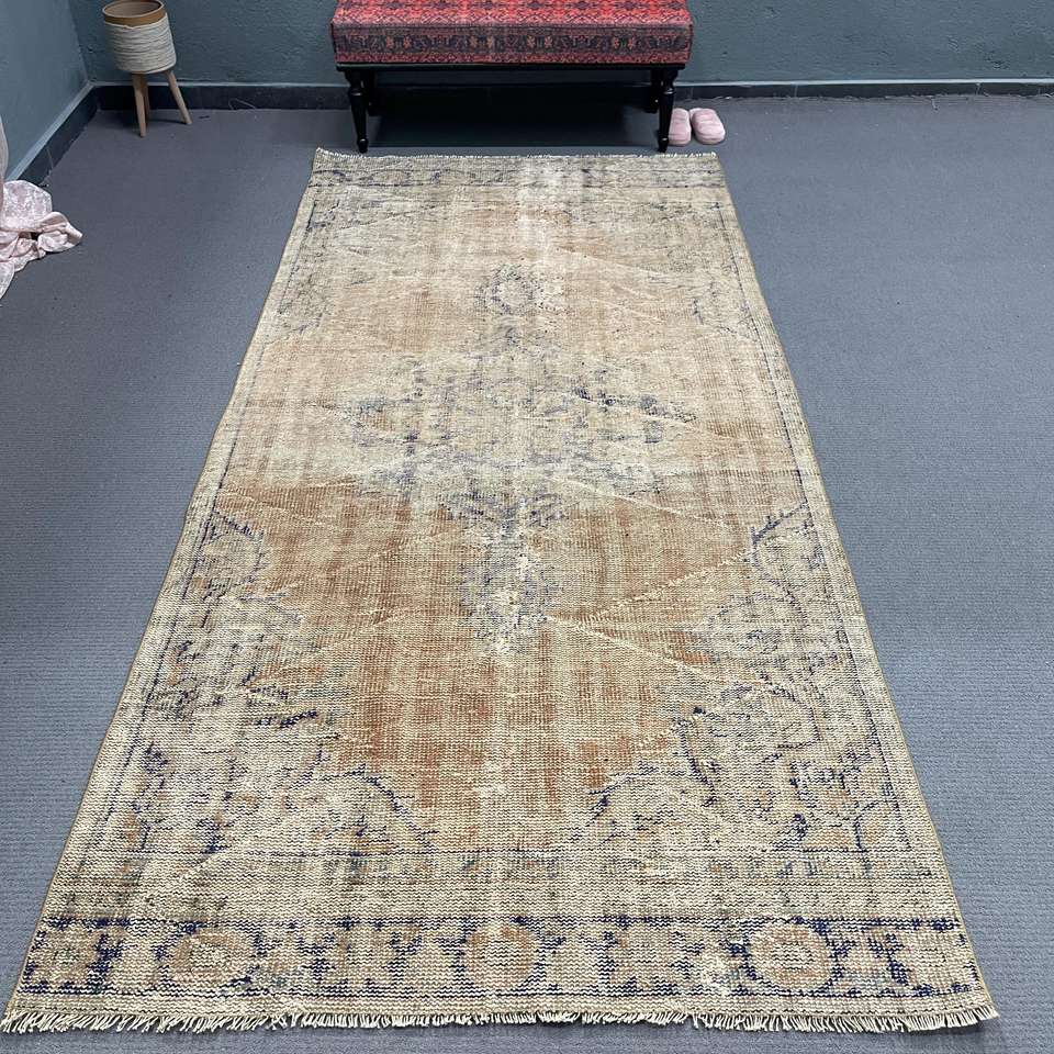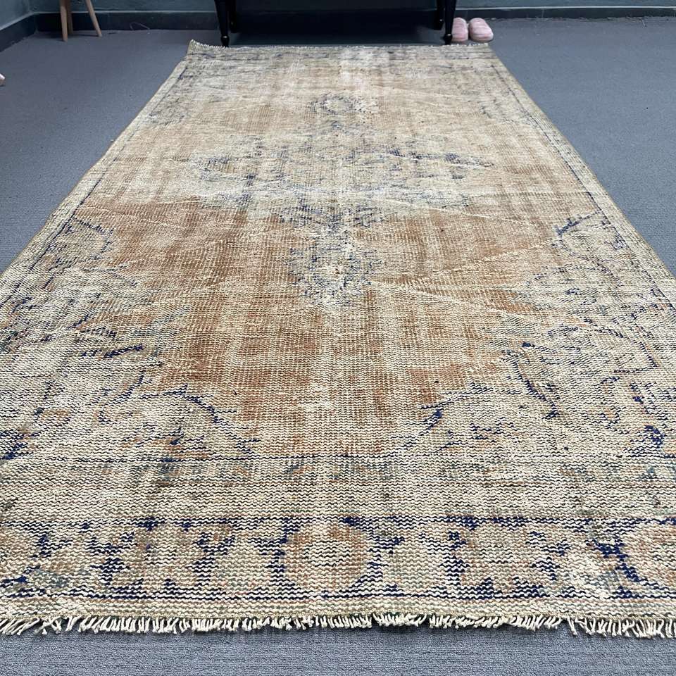 Turkish Large Rug, 4.8x10 ft Vintage Rug, Brown Check Wool Rug