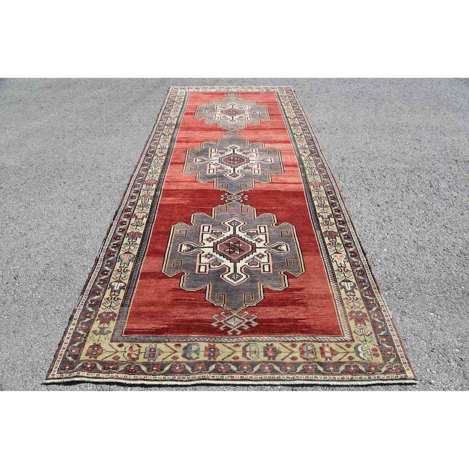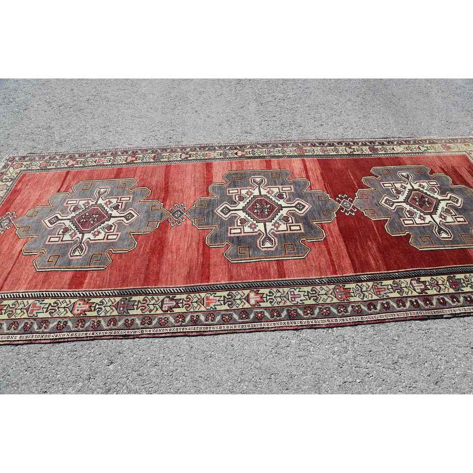 Turkish Large Rug 4.9x11.5 ft, Red Gray Polka dot Rug Wool