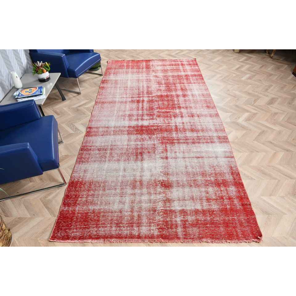 Turkish Large Rug 5.5x11.6 ft, Red Striped Vintage Wool Rug