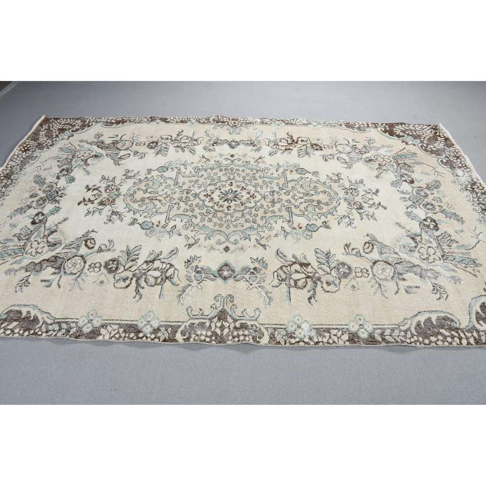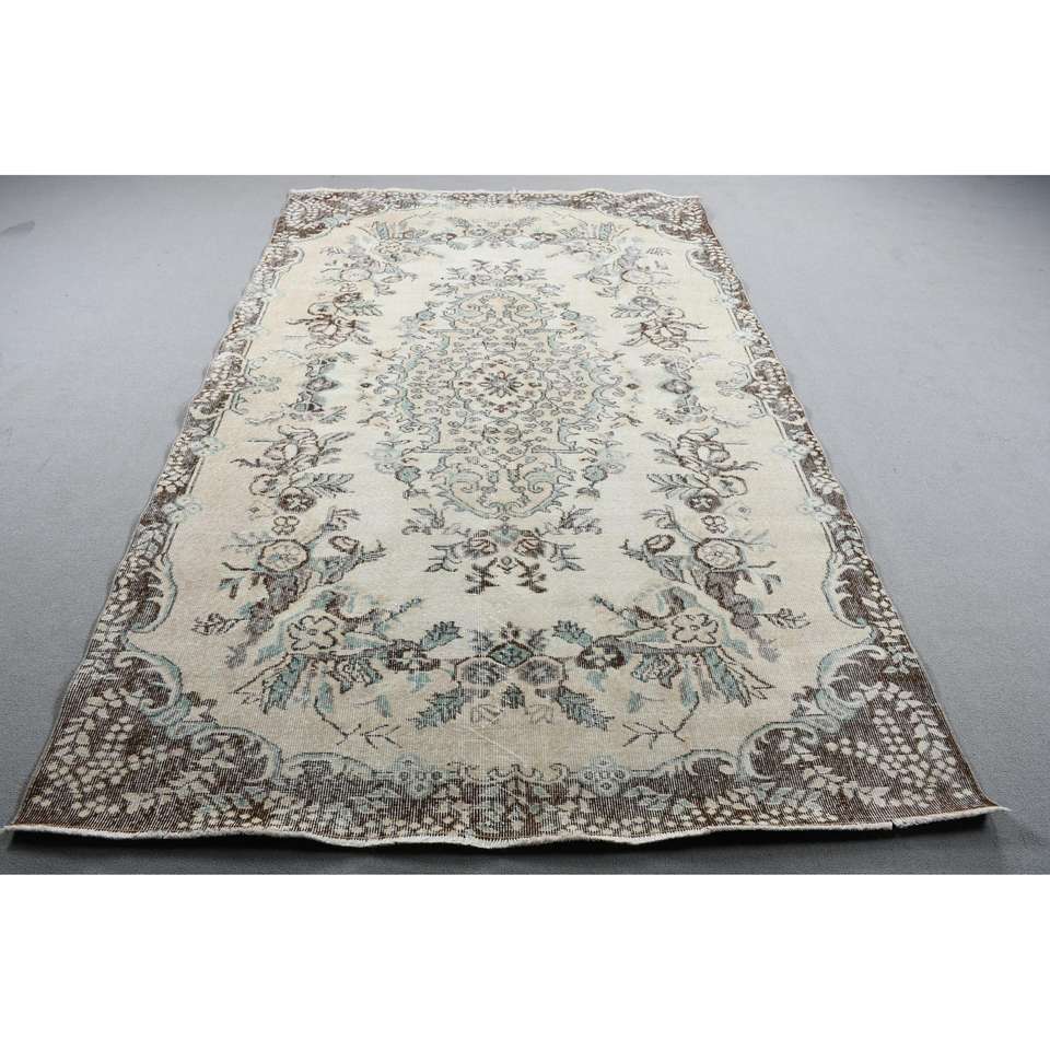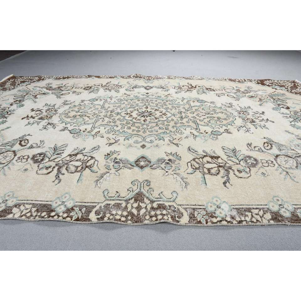 Turkish Large Rug 5,5x9 ft, Brown Polka dot Vintage Wool Rug