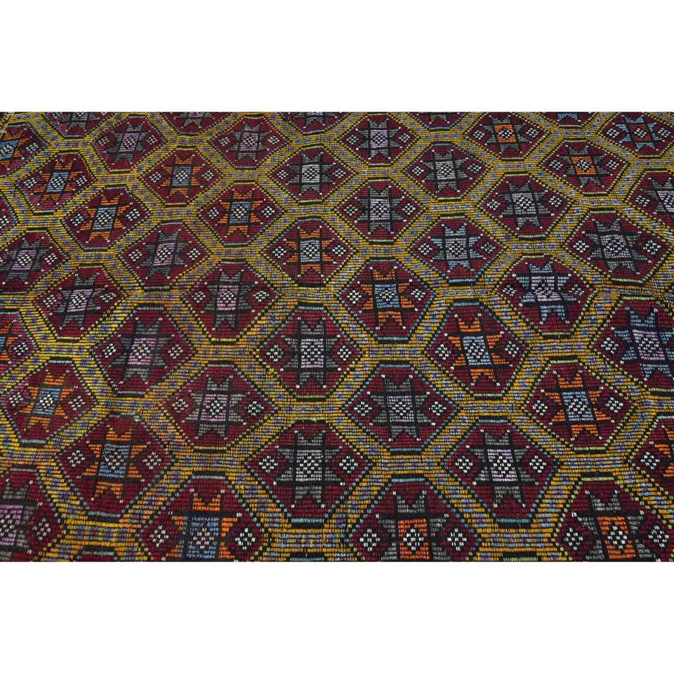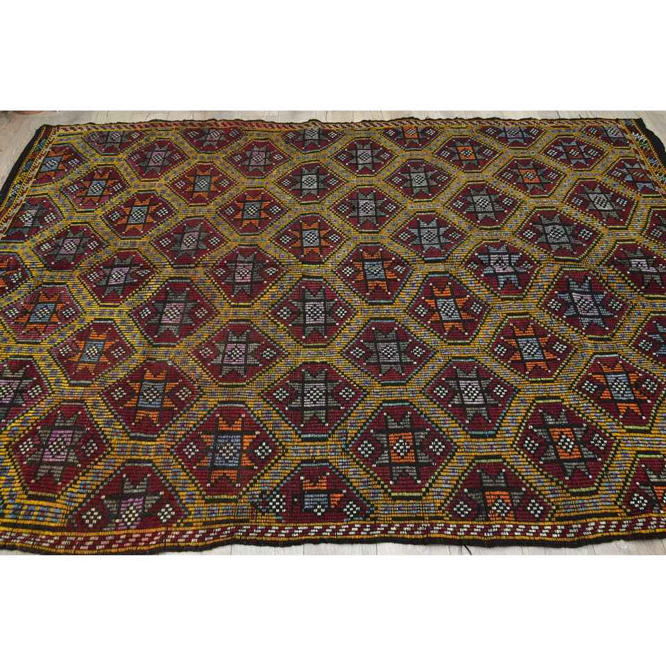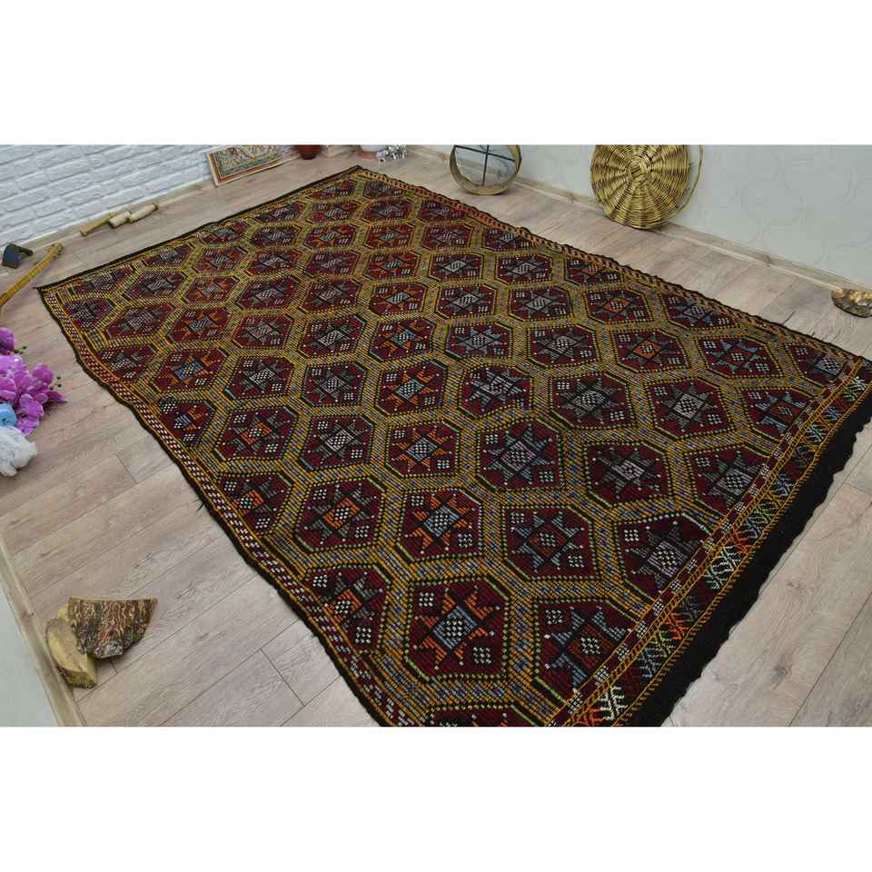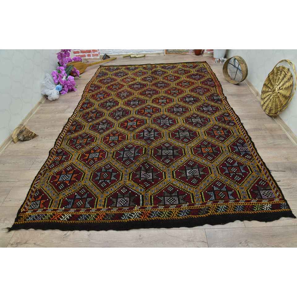 Turkish Large Rug, 6.2x10.2 ft Vintage Rug, Red Check Wool Rug