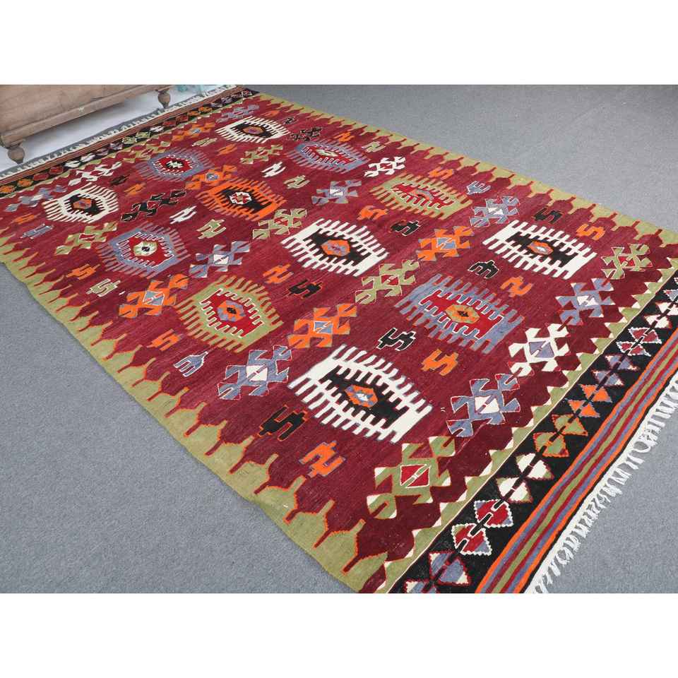 Turkish Large Rug, 6.3x10 ft Vintage Rug, Red Kilim Wool Rug