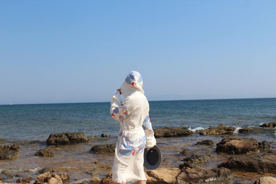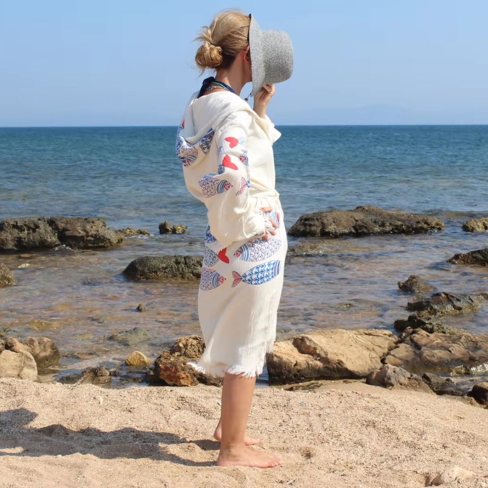 Turkish Muslin Fabric Hooded Soft Robe Colorful Women Men Children Bathrobe Beach Sauna Bath Home Towel Washable Quick Drying