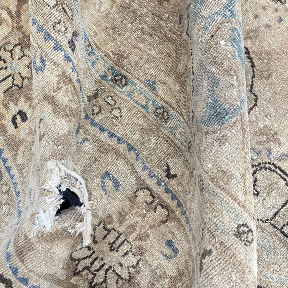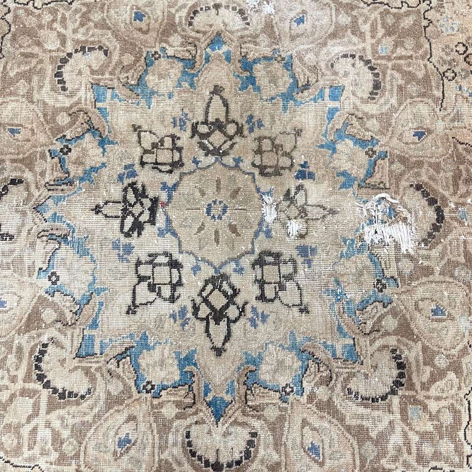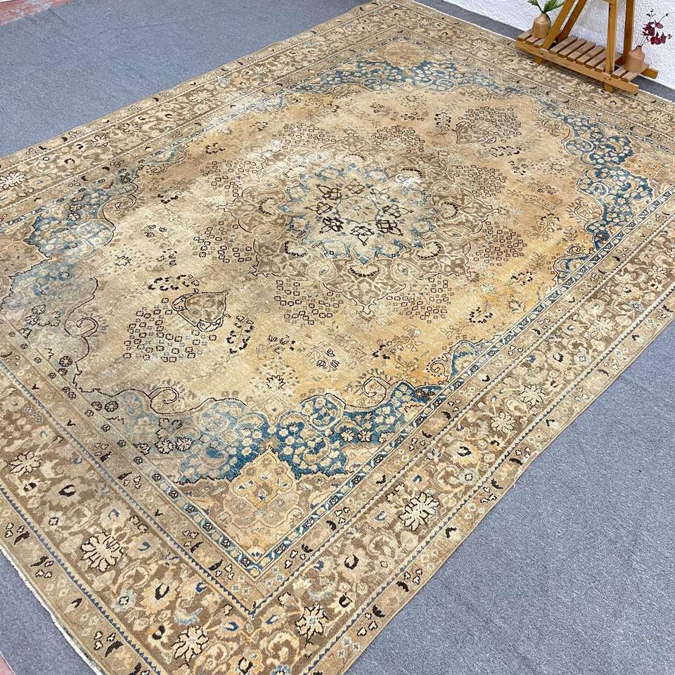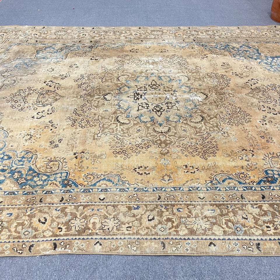 Turkish Oversize Eco-Friendly Rug 9.2x12.2 ft (279x372 Cm) Vintage Brown Patchwork Wool Rug with Latex Backing