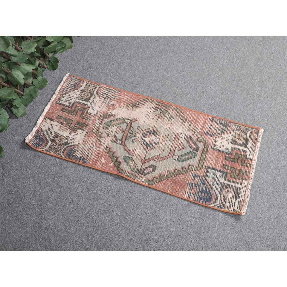Turkish Rug, 1.2x2.7 ft Small Rug, Red Ikat Wool Vintage Rug