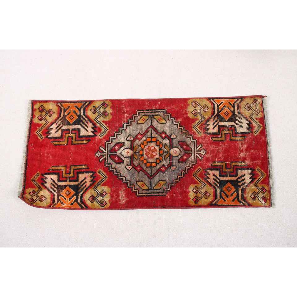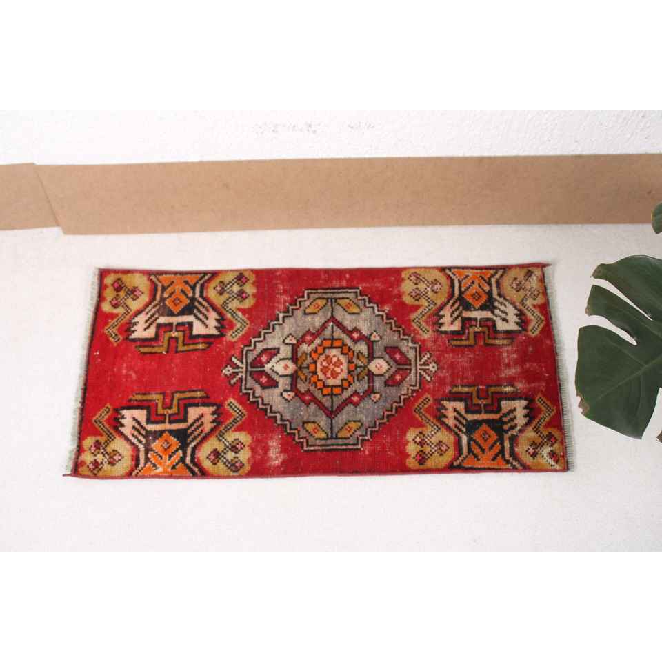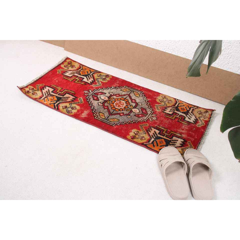 Turkish Rug, 1.4x3 ft Small Rug, Red Orange Wool Rug