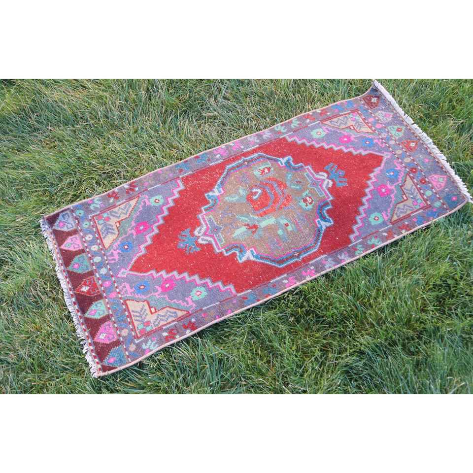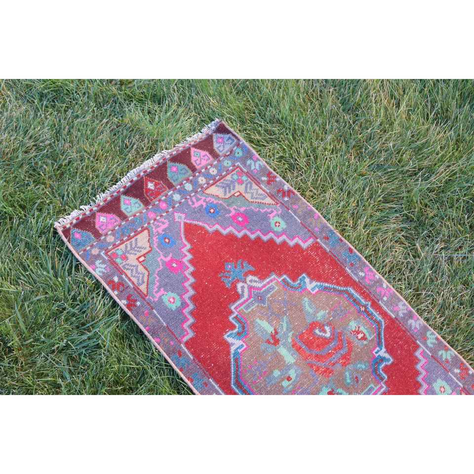Turkish Rug 1.8x3.3 ft, Red Blue Southwestern Wool Vintage Rug