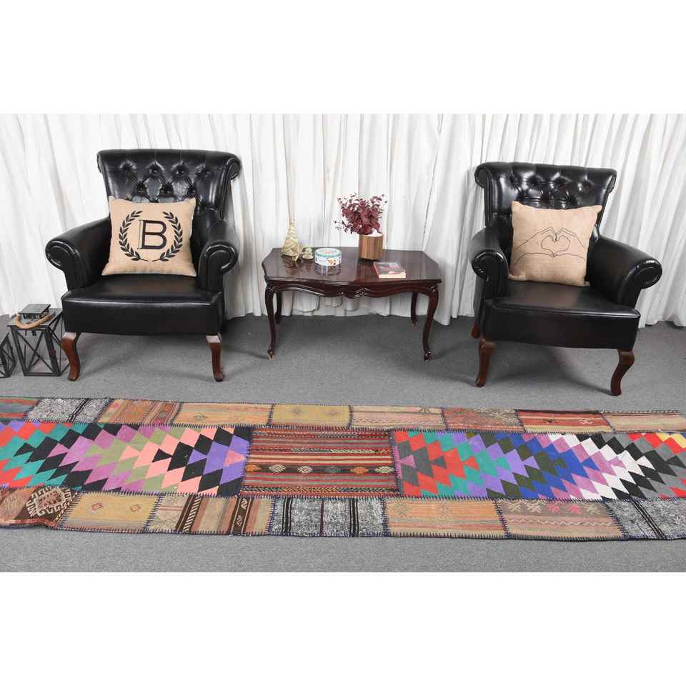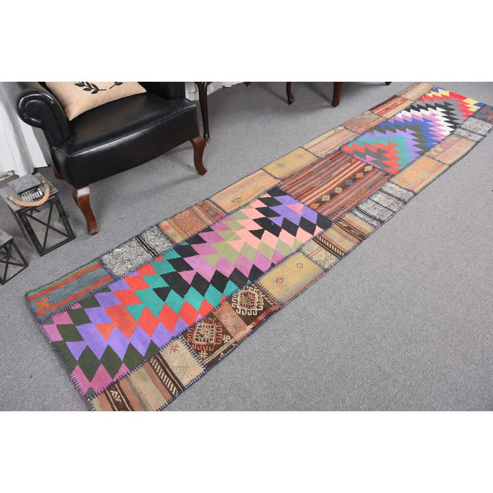 Turkish Rug, 2.5x10.6 ft Vintage Rug, Red Blue Animal Print Wool Rug