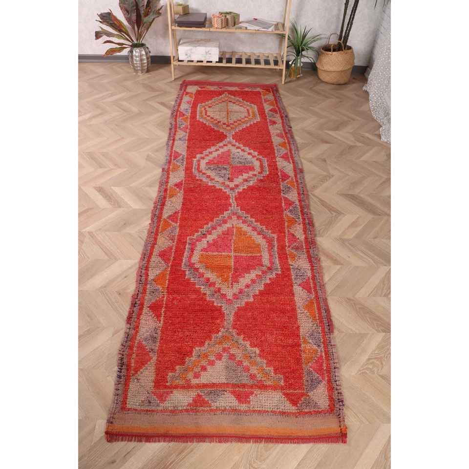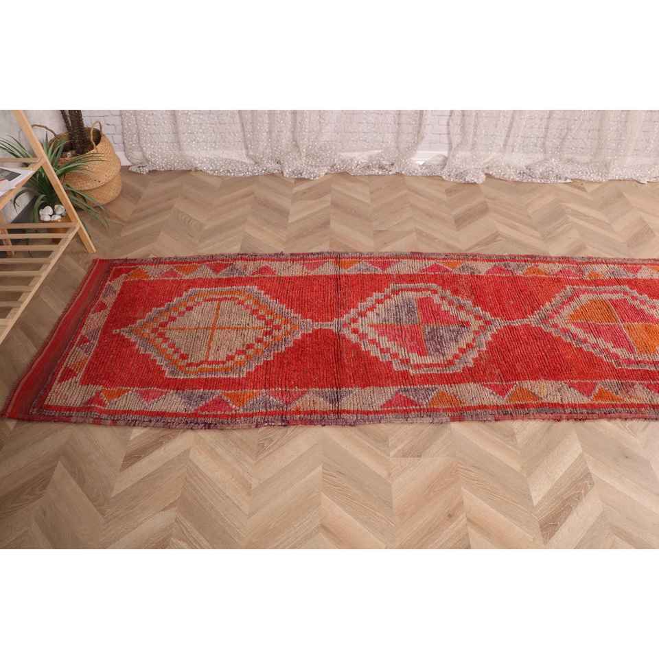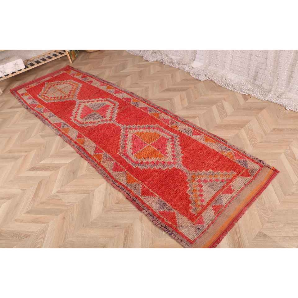 Turkish Rug, 2.8x9.8 ft Runner Rug, Red Striped Wool Vintage Rug