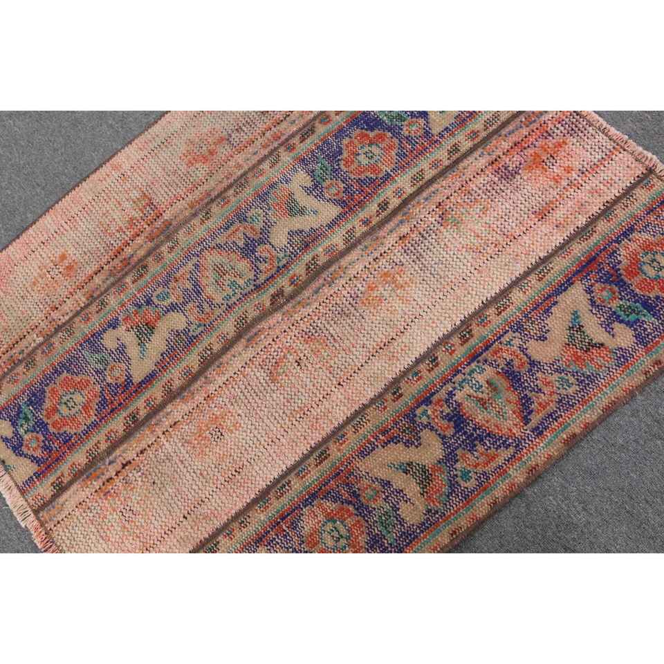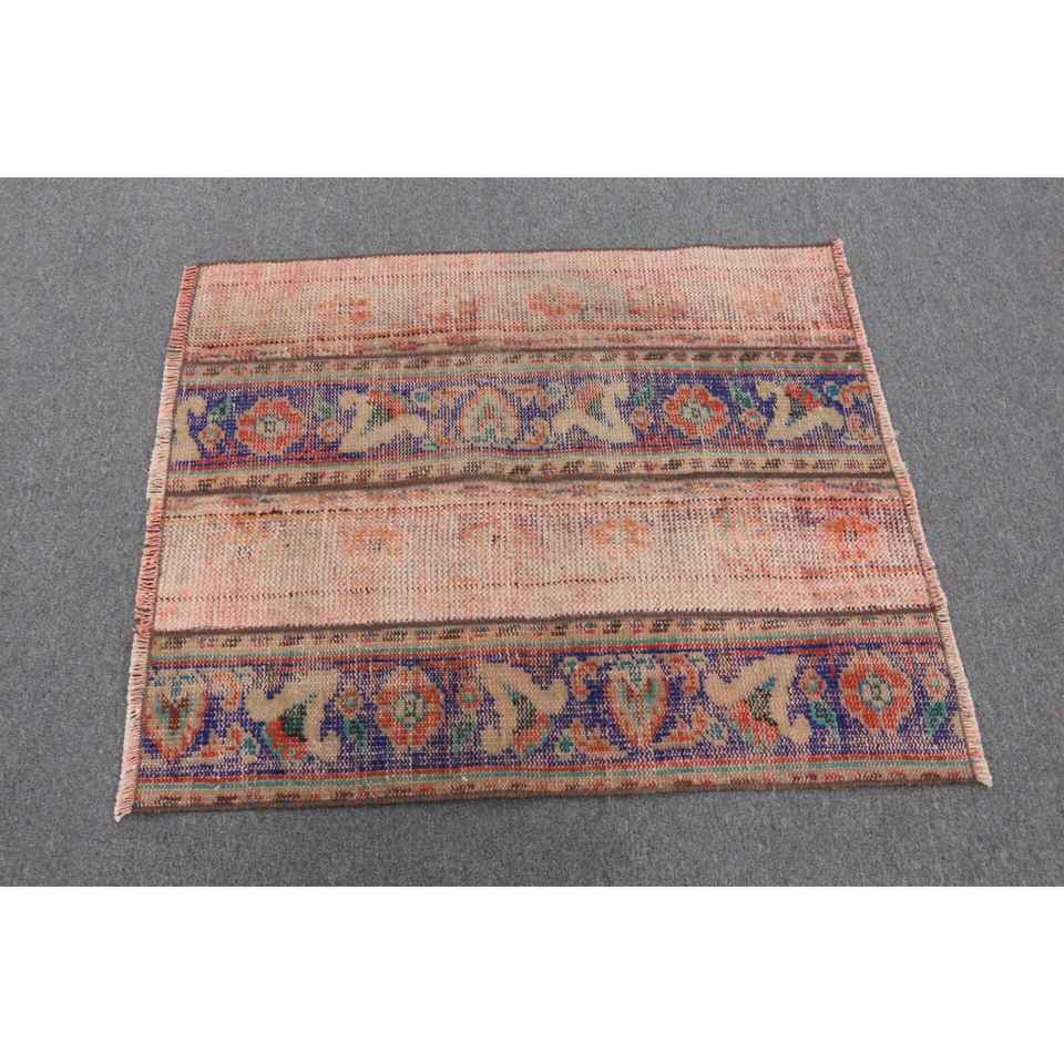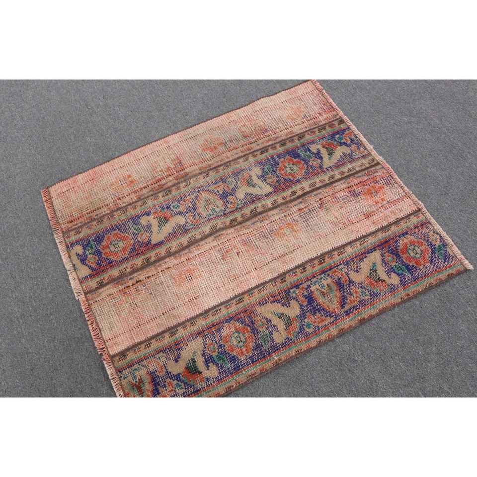 Turkish Rug 2.9x3.4 ft Vintage Patchwork Red Blue Wool Rug with Latex Backing