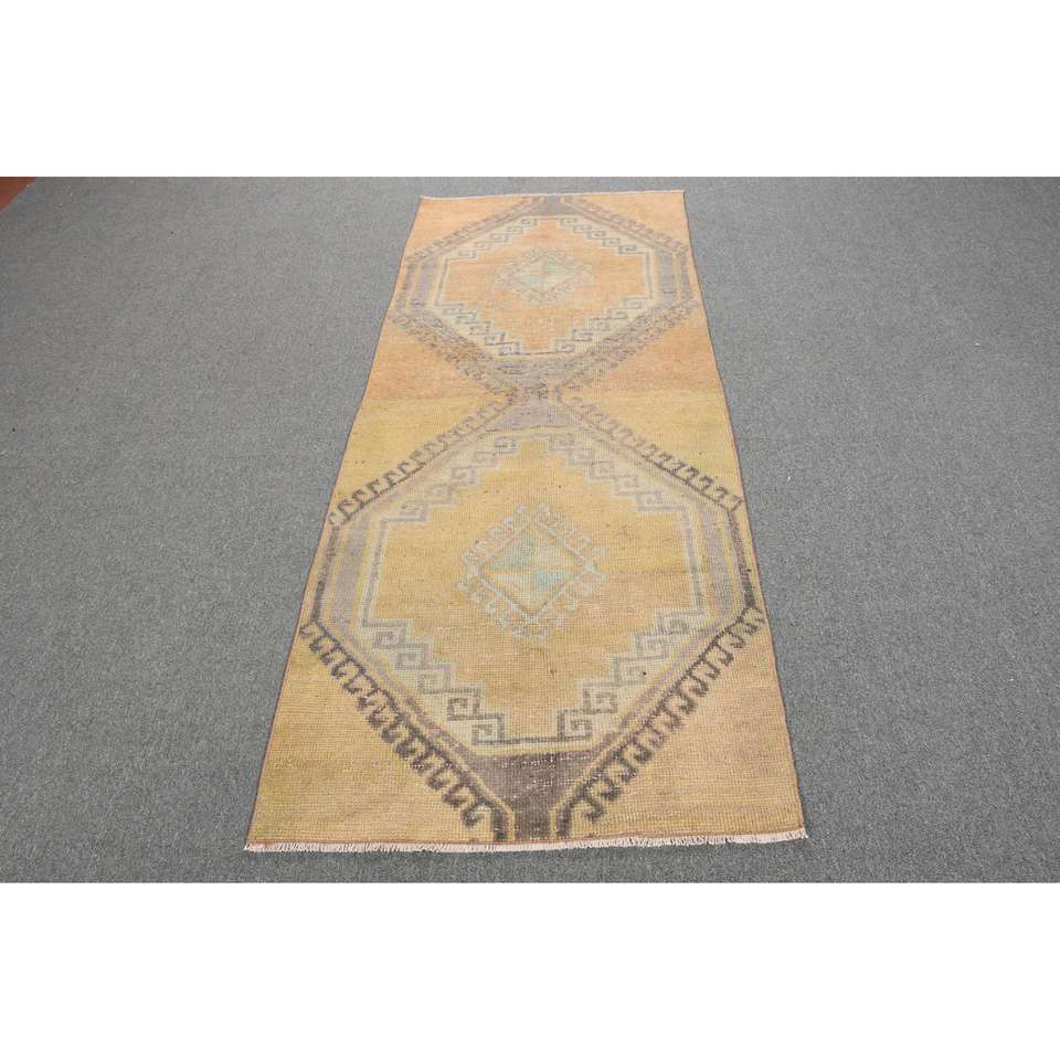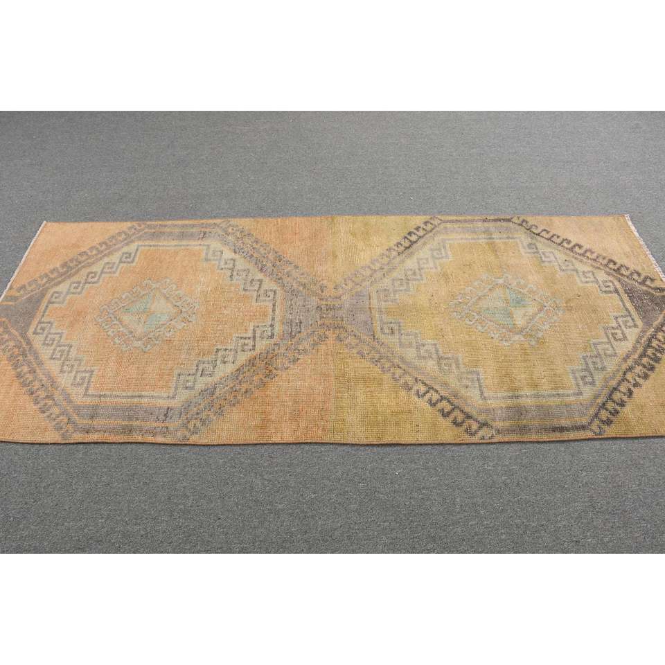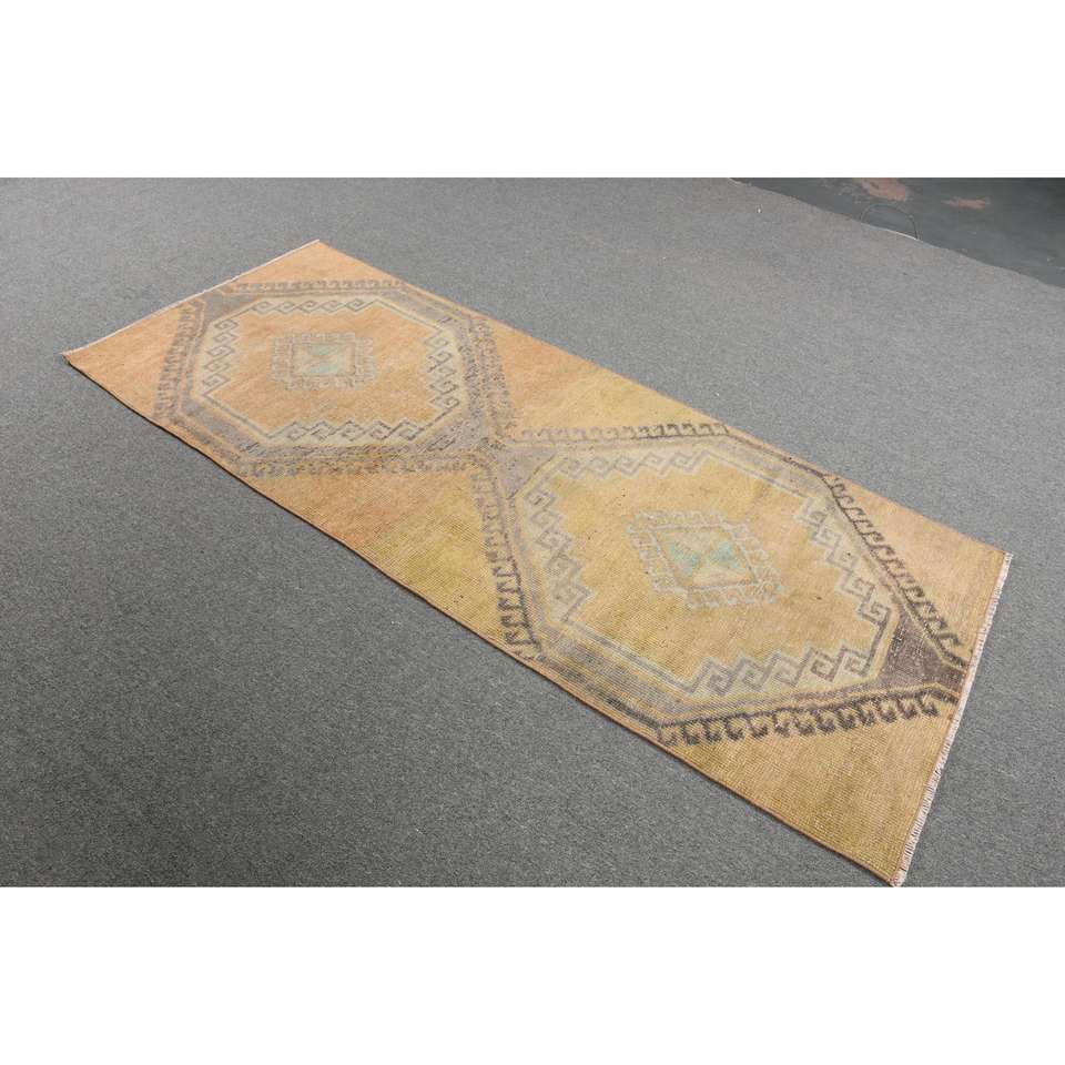 Turkish Rug, 2.9x7 ft Accent Vintage Rug, Yellow Gray Abstract Rug