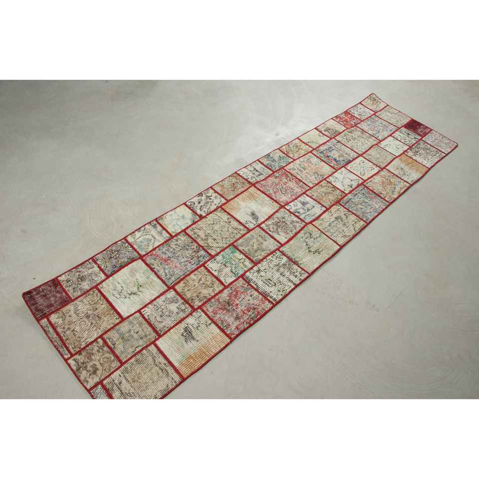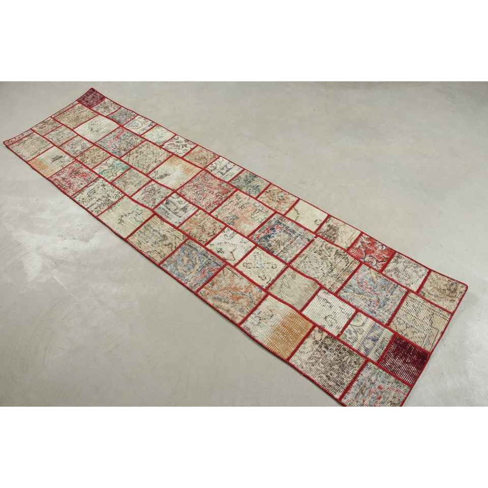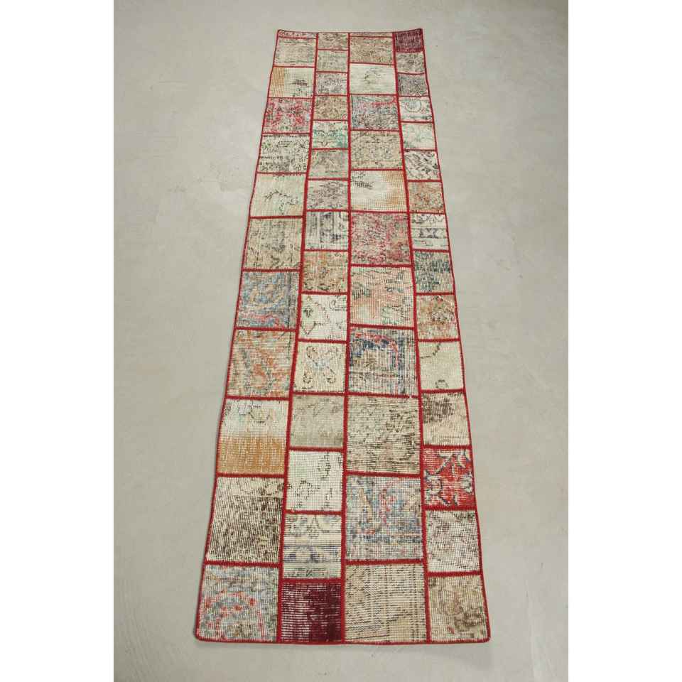 Turkish Rug 2x7.4 ft, Red Brown Moroccan Wool Vintage Rug