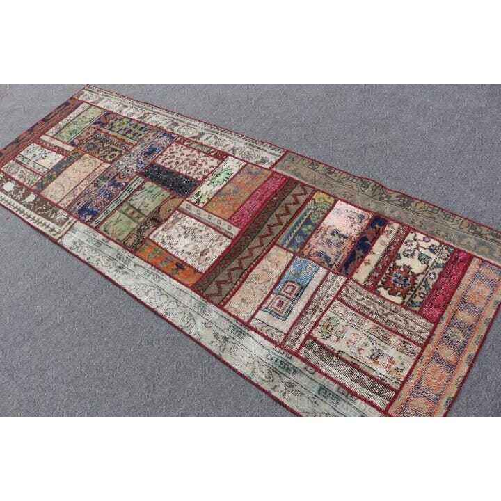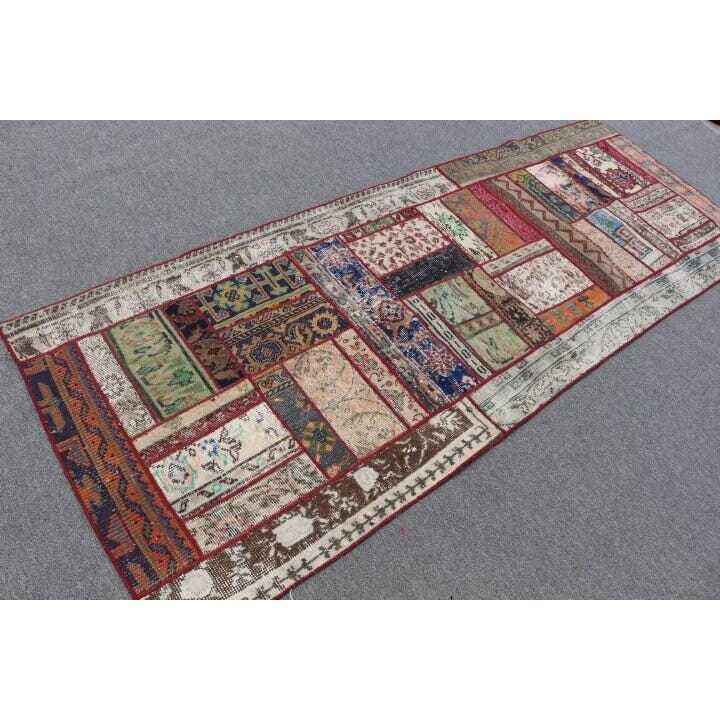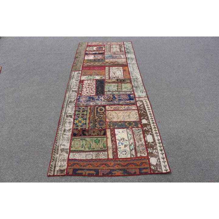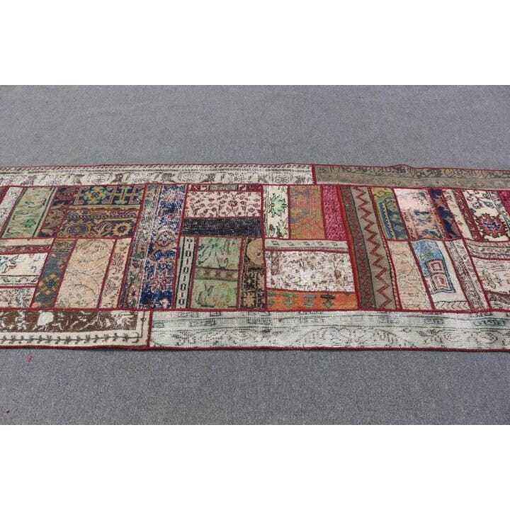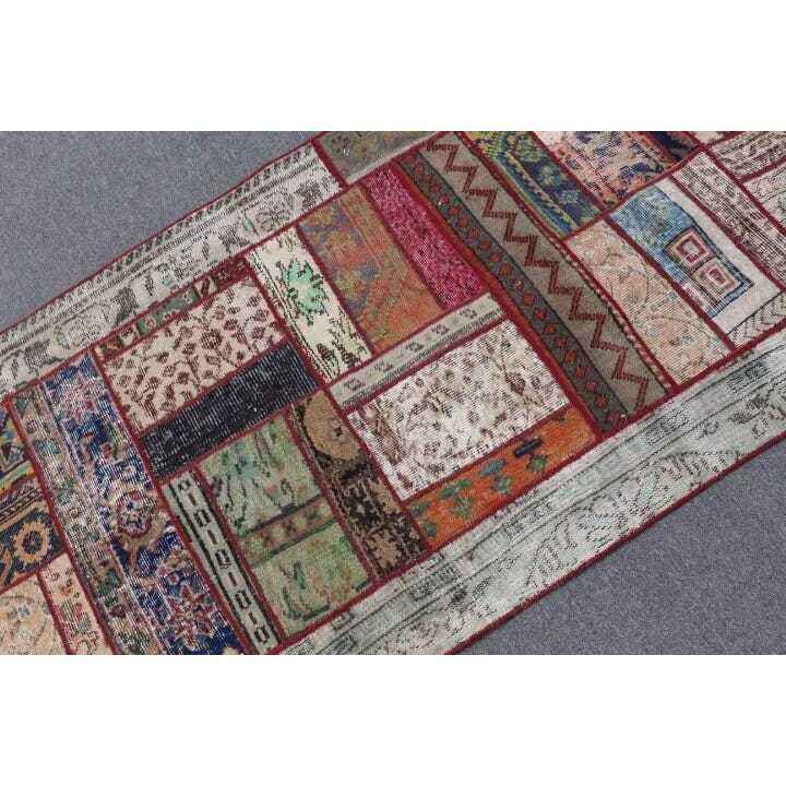 Turkish Rug, 3.1x8.3 ft Runner Rug, Red Blue Wool Rug