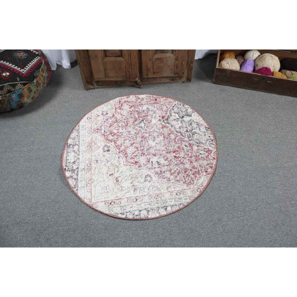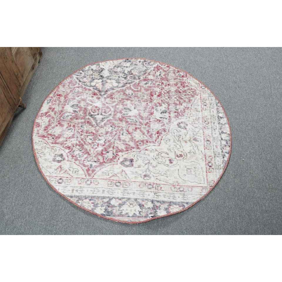 Turkish Vintage Rug 3.2x3.2 ft Red Ombr Wool Patchwork Eco Friendly Latex Backing