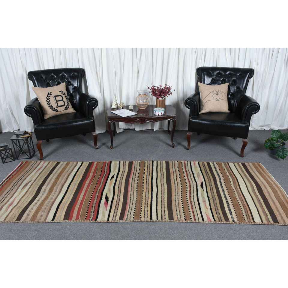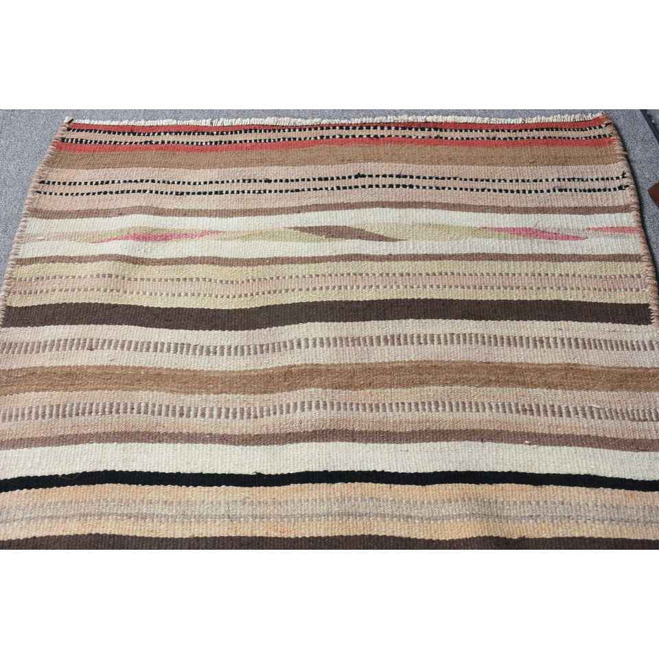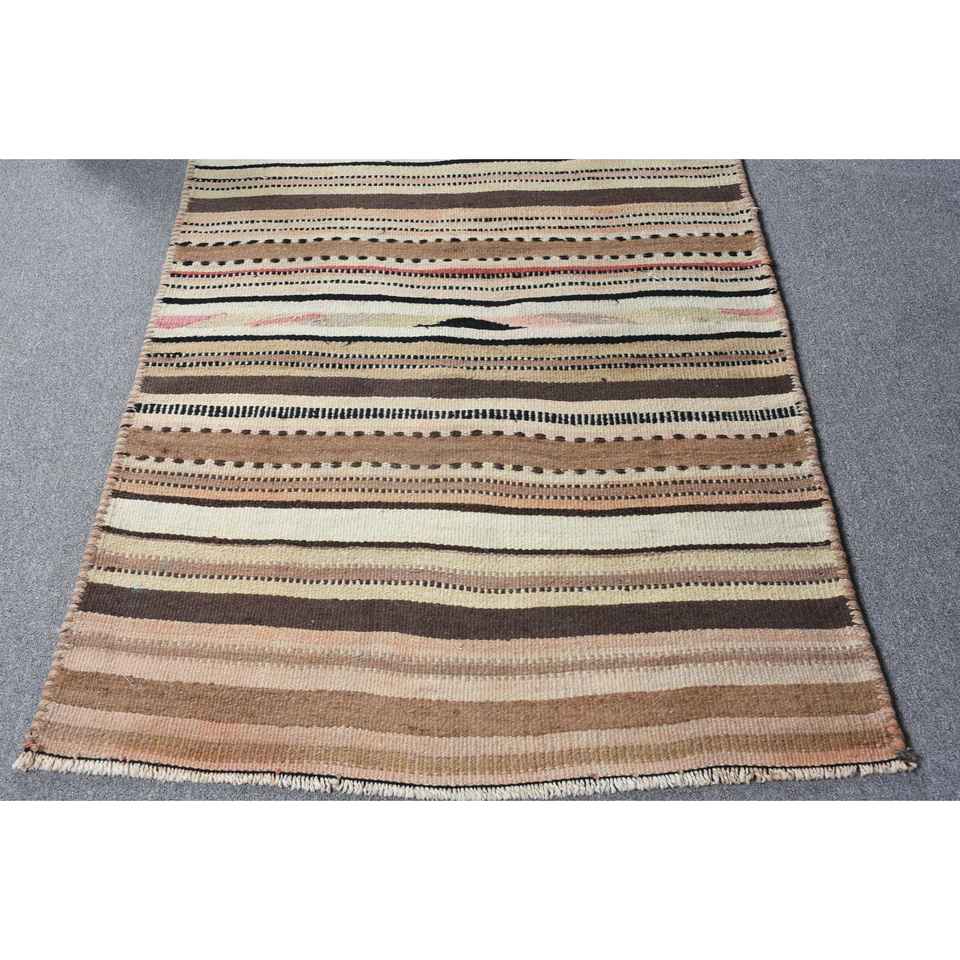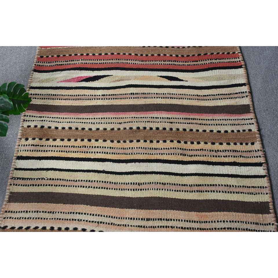 Turkish Rug, 3.2x9.2 ft Runner Rug, Brown Beige Herki Wool Rug