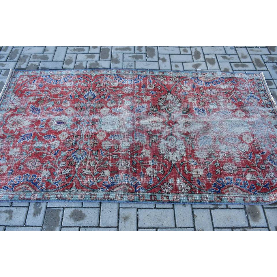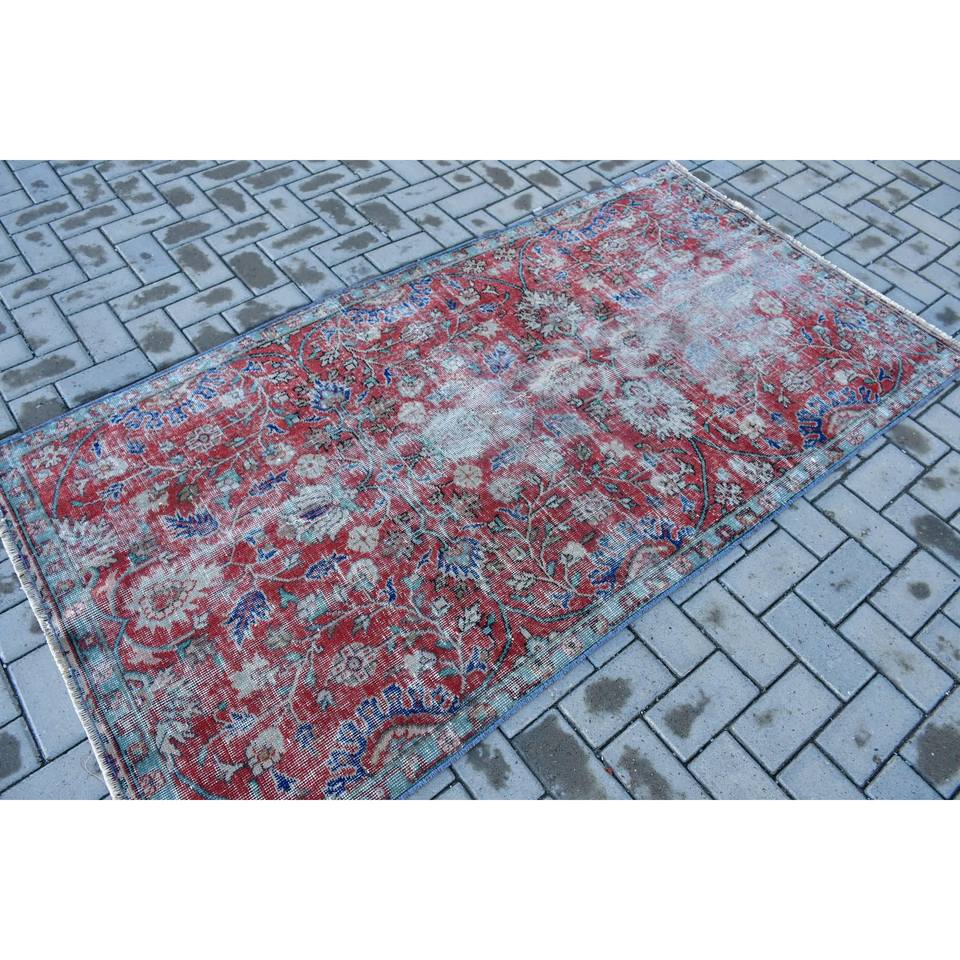 Turkish Rug 3.5x6.8 ft, Red Blue Ombr Wool Vintage Rug