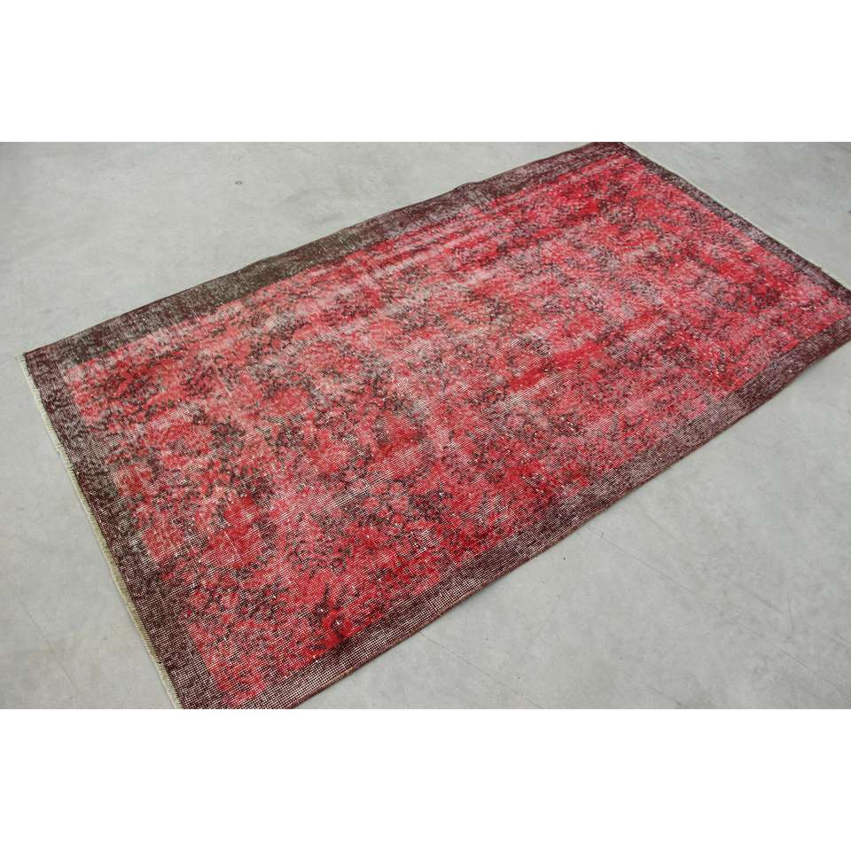 Turkish Rug, 3.6x6.6 ft Accent Rug, Red Abstract Wool Vintage Rug