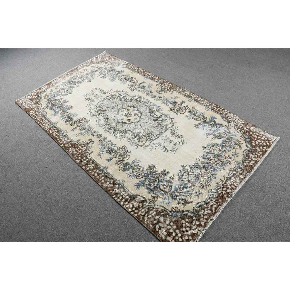Turkish Rug, 3.7x6.4 ft Vintage Rug, Brown Moroccan Wool Rug