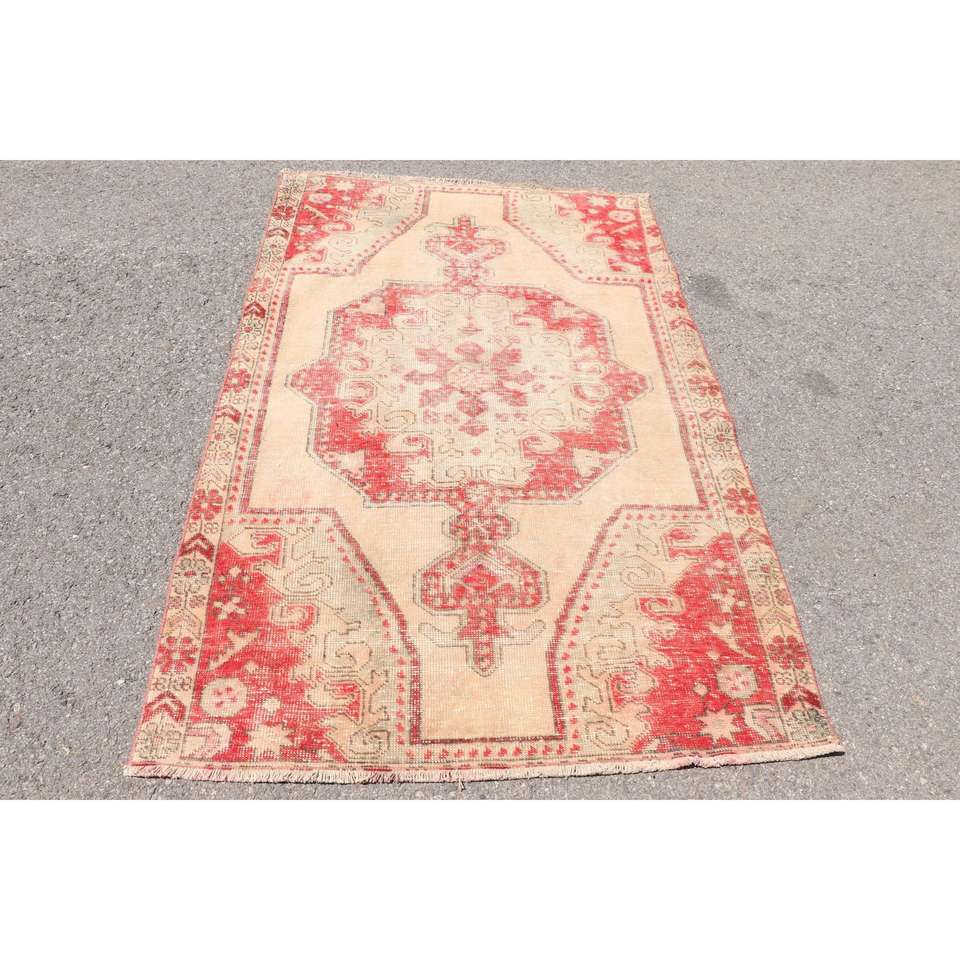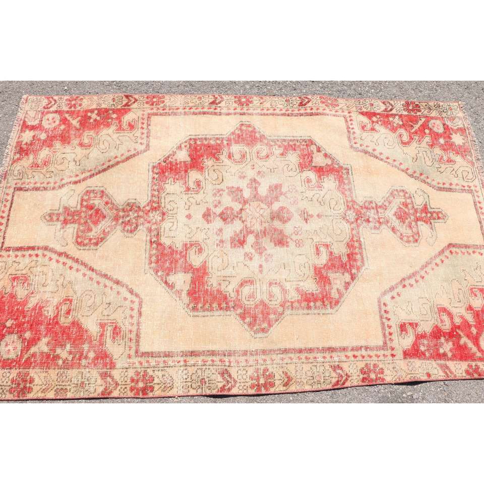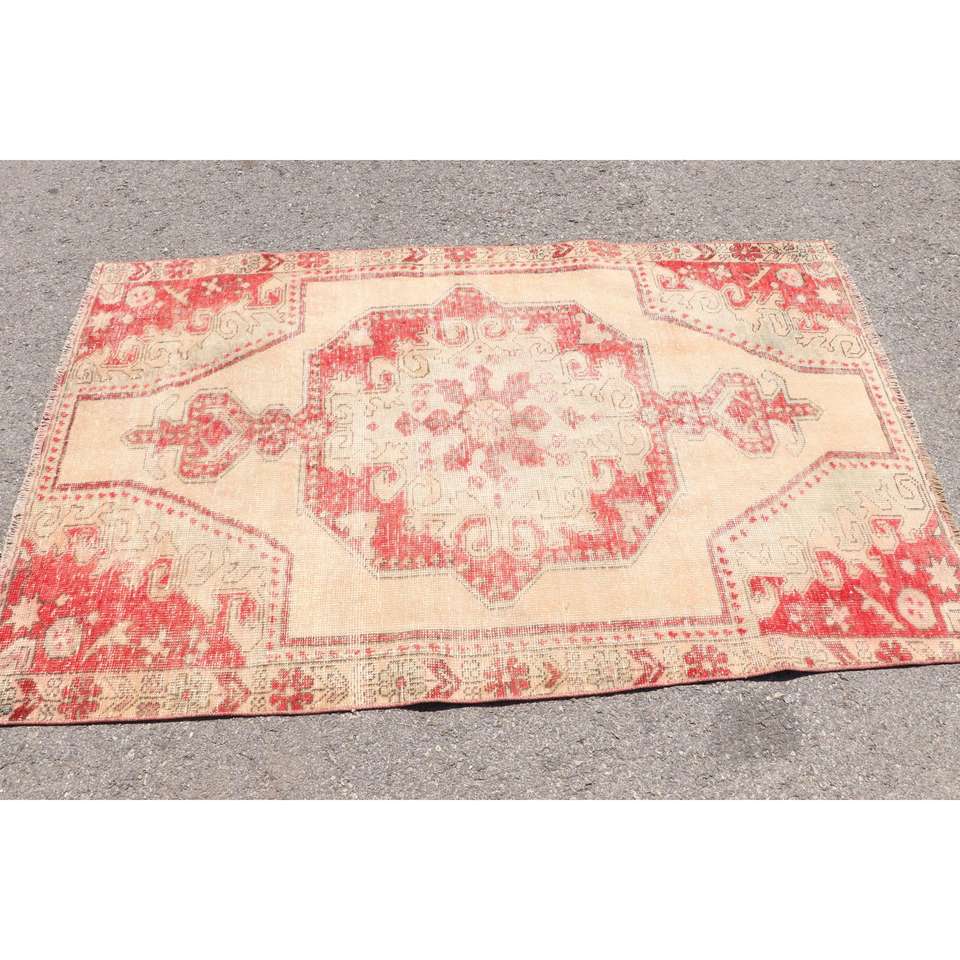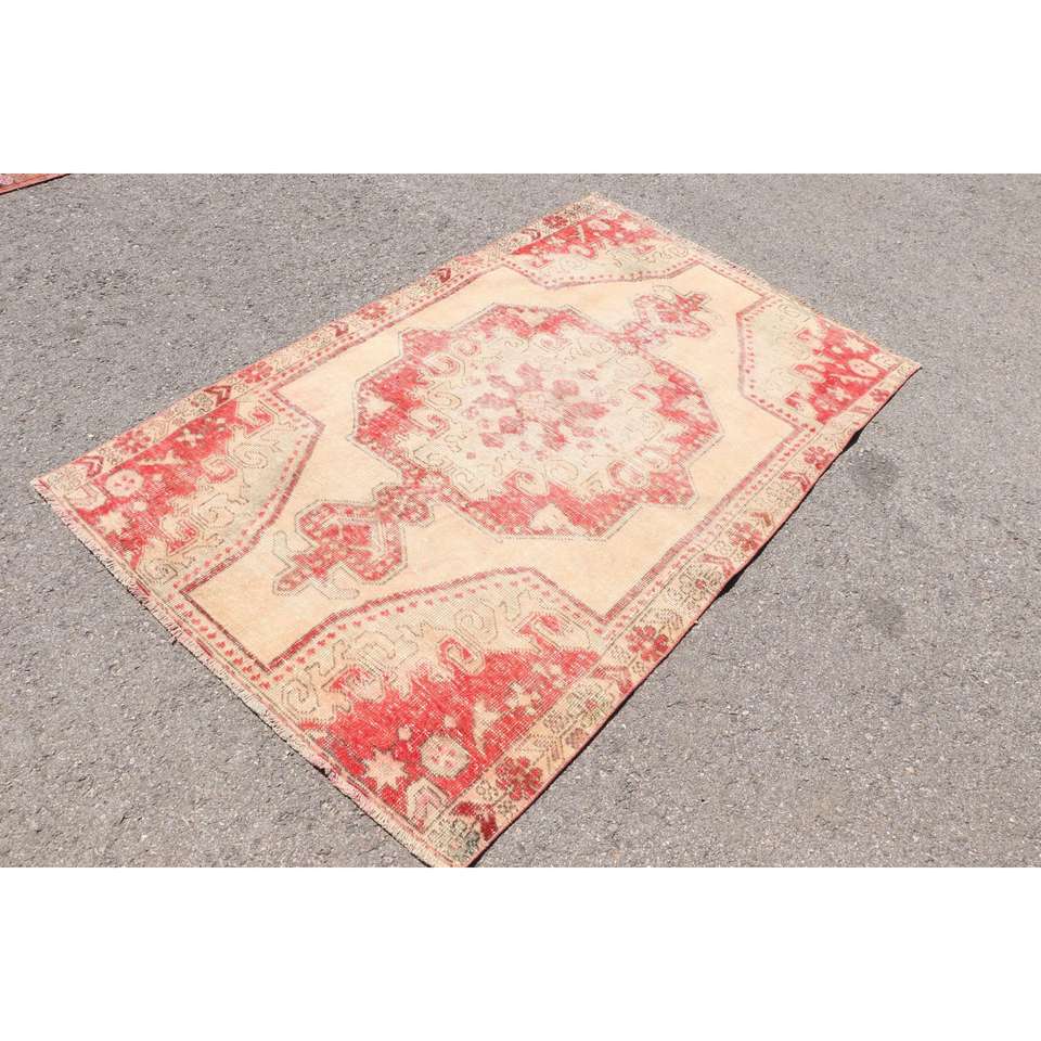 Turkish Rug, 4.1x6.5 ft Vintage Rug, Red Solid Wool Rug