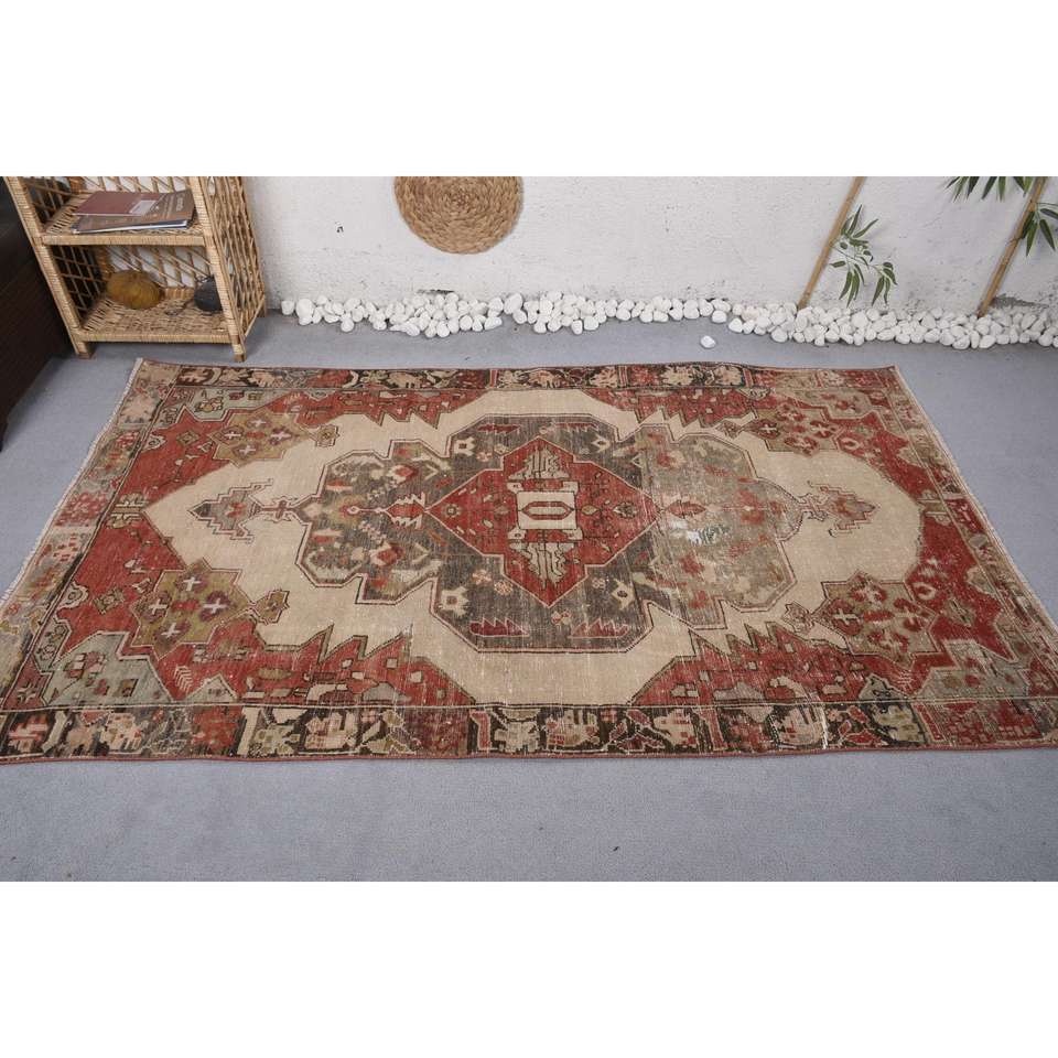 Turkish Rug, 4.2x7.2 ft Area Rug, Red Camouflage Wool Vintage Rug