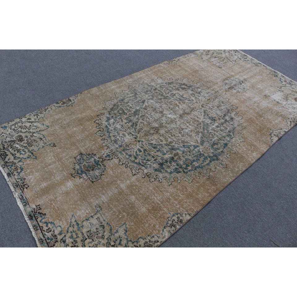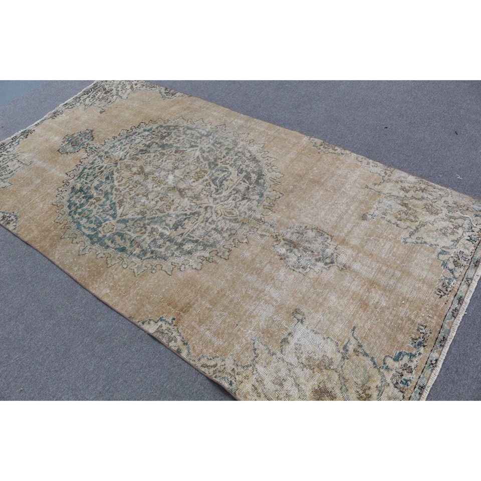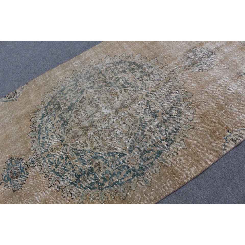Turkish Rug, 4.4x8.5 ft Area Rug, Brown Bordered Wool Vintage Rug