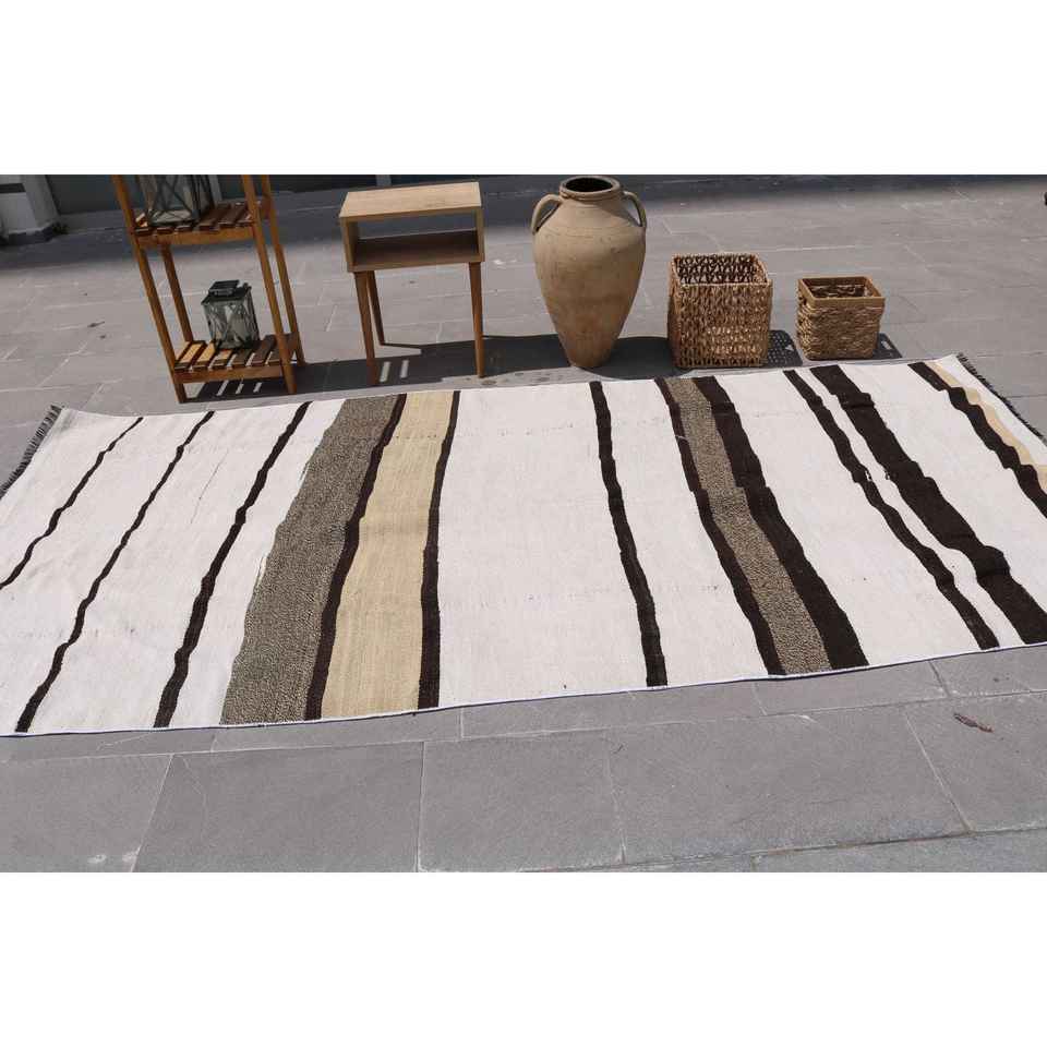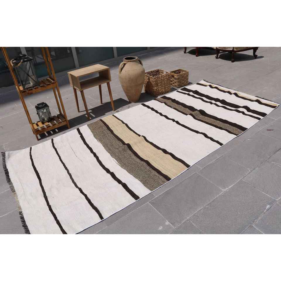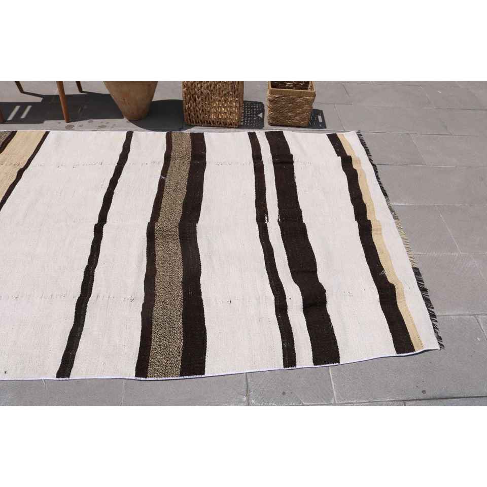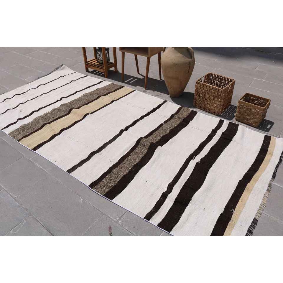 Turkish Rug, 4.5x10.1 ft Large Rug, White Brown Wool Rug