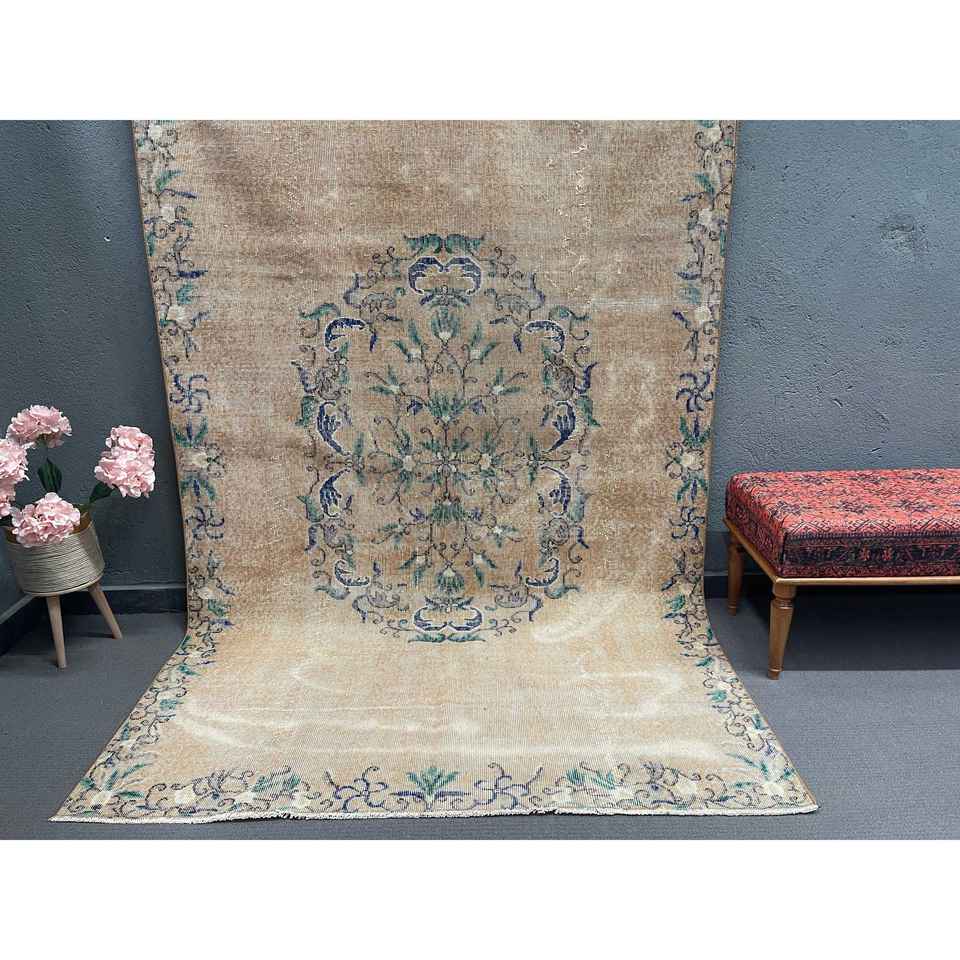 Turkish Rug, 5.3x8.8 ft Large Rug, Brown Blue Wool Rug