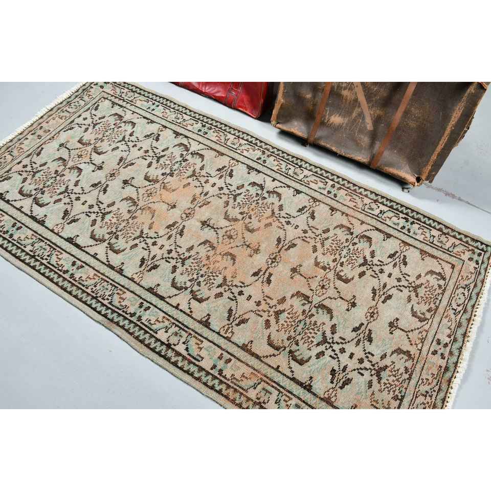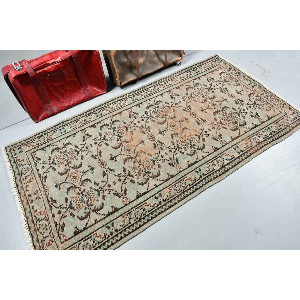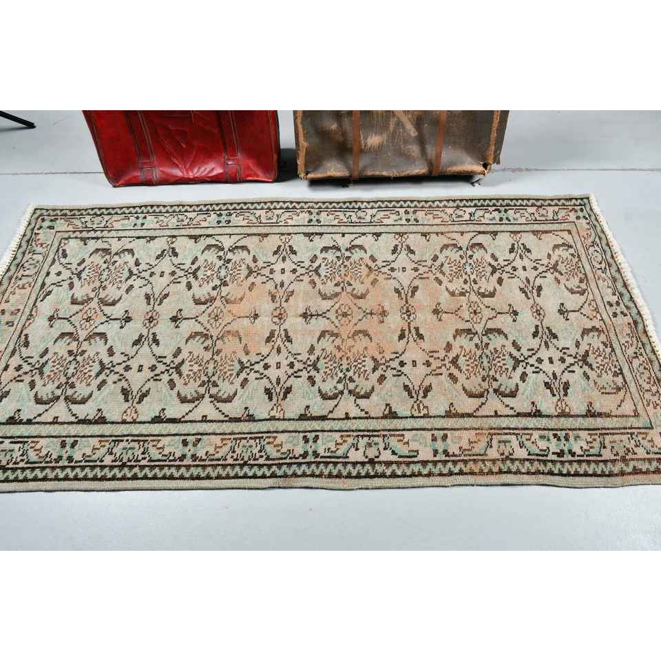 Turkish Rug, 5.4x6.6 ft Vintage Rug, Brown Blue Patchwork Wool Rug