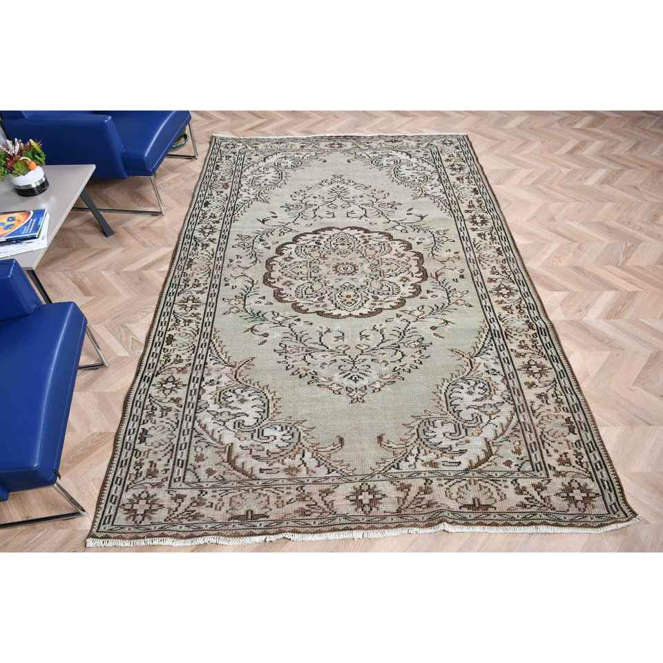 Turkish Rug, 5.9x9.1 ft Vintage Rug, Brown Gray Camouflage Wool Rug