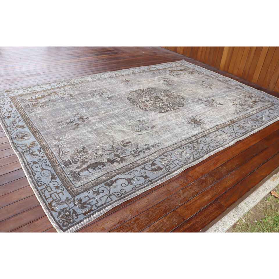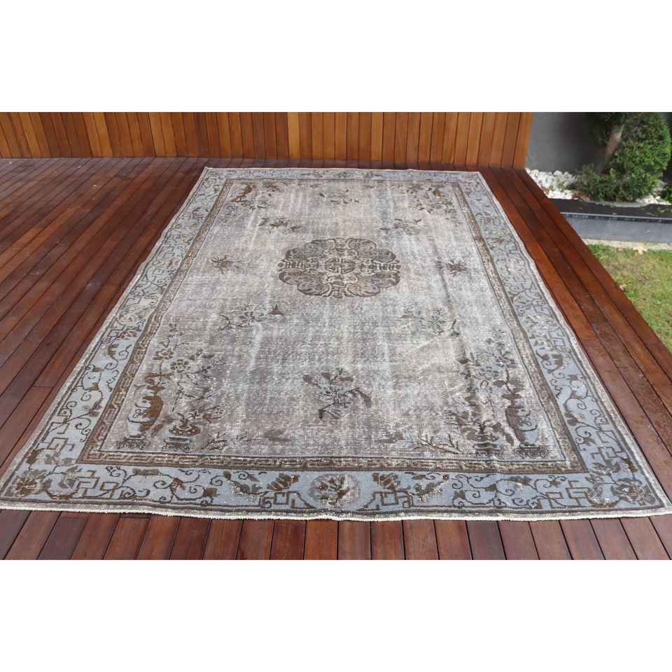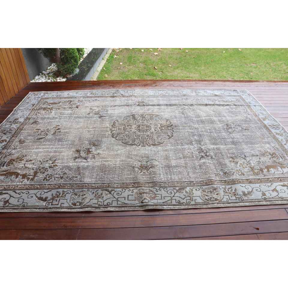 Turkish Rug, 6.9x10.3 ft Oversize Rug, Gray Brown Wool Rug