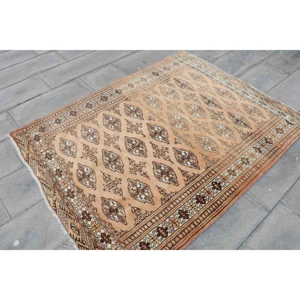 Turkish Rug, Area 4.6x5.9 ft Vintage Rug, Brown Floral Wool Rug