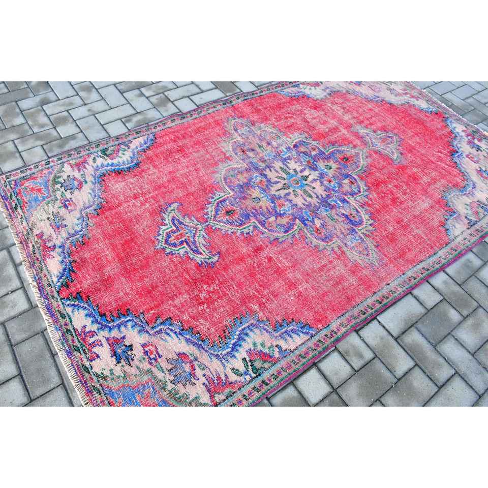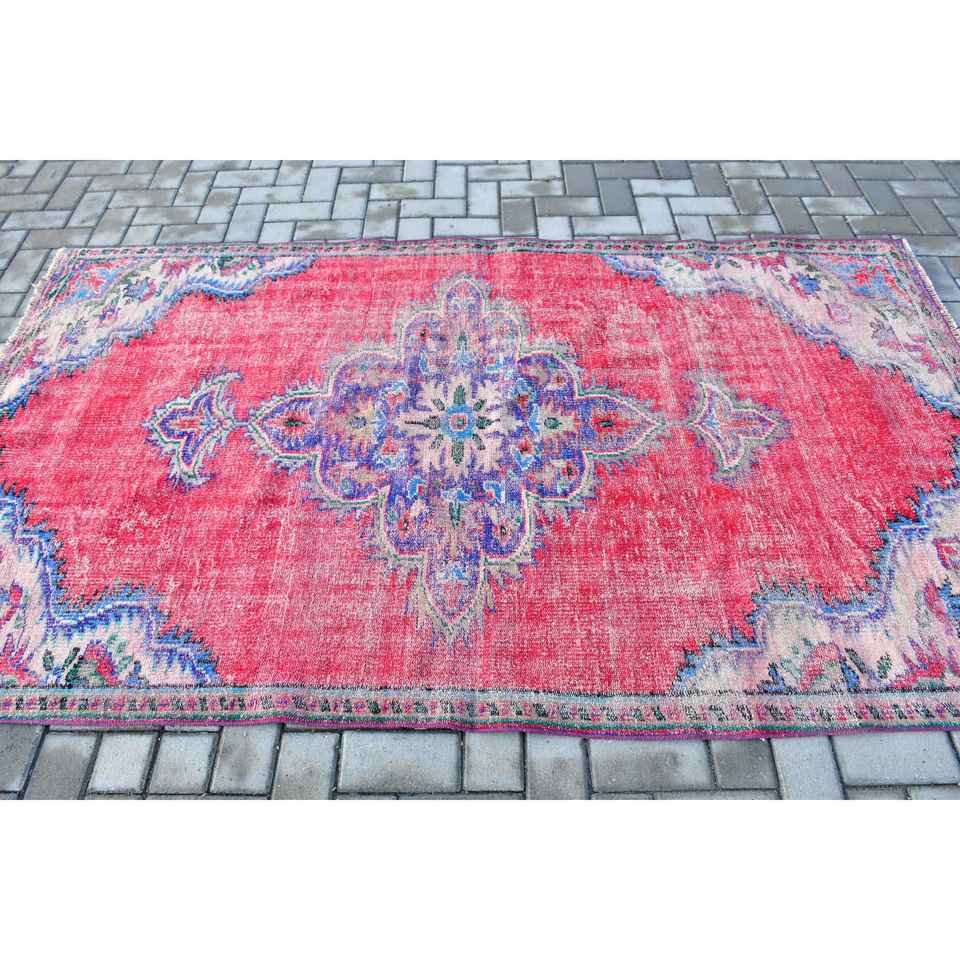Turkish Rug, Area 4.6x7.9 ft Vintage Rug, Red Polka dot Wool Rug
