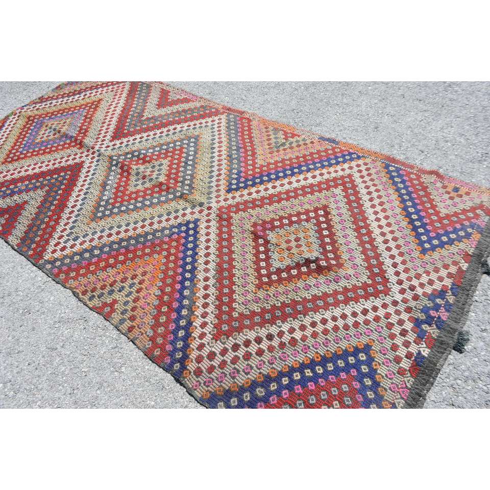 Turkish Rug, Large 4.8x9.8 ft Vintage Rug, Red Floral Wool Rug