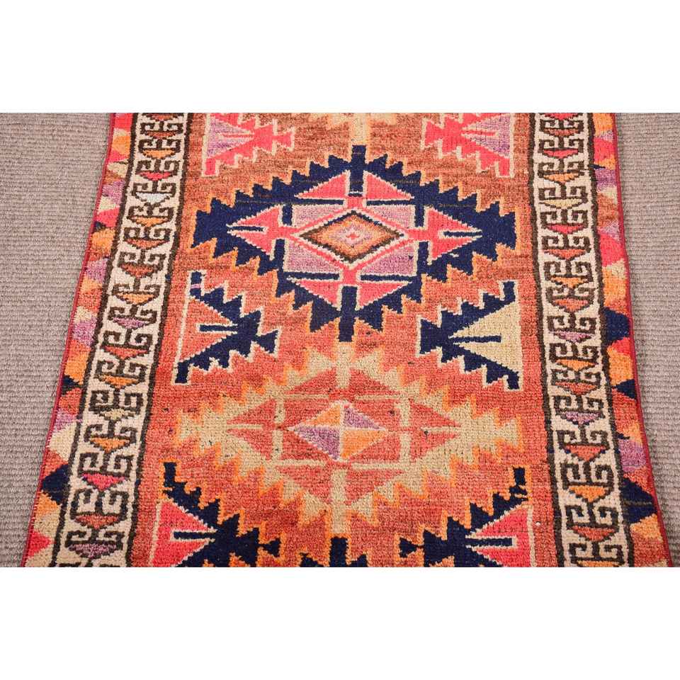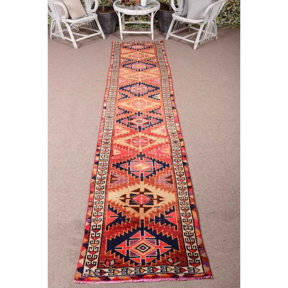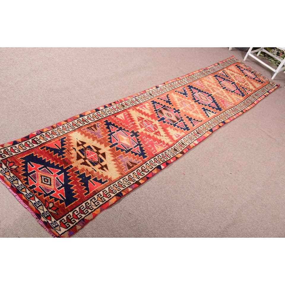 Turkish Rug, Runner 2.5x12.1 ft Vintage Rug, Red Patchwork Wool Rug