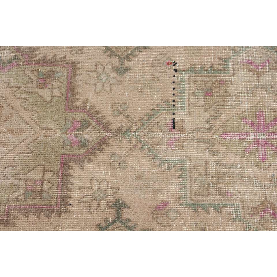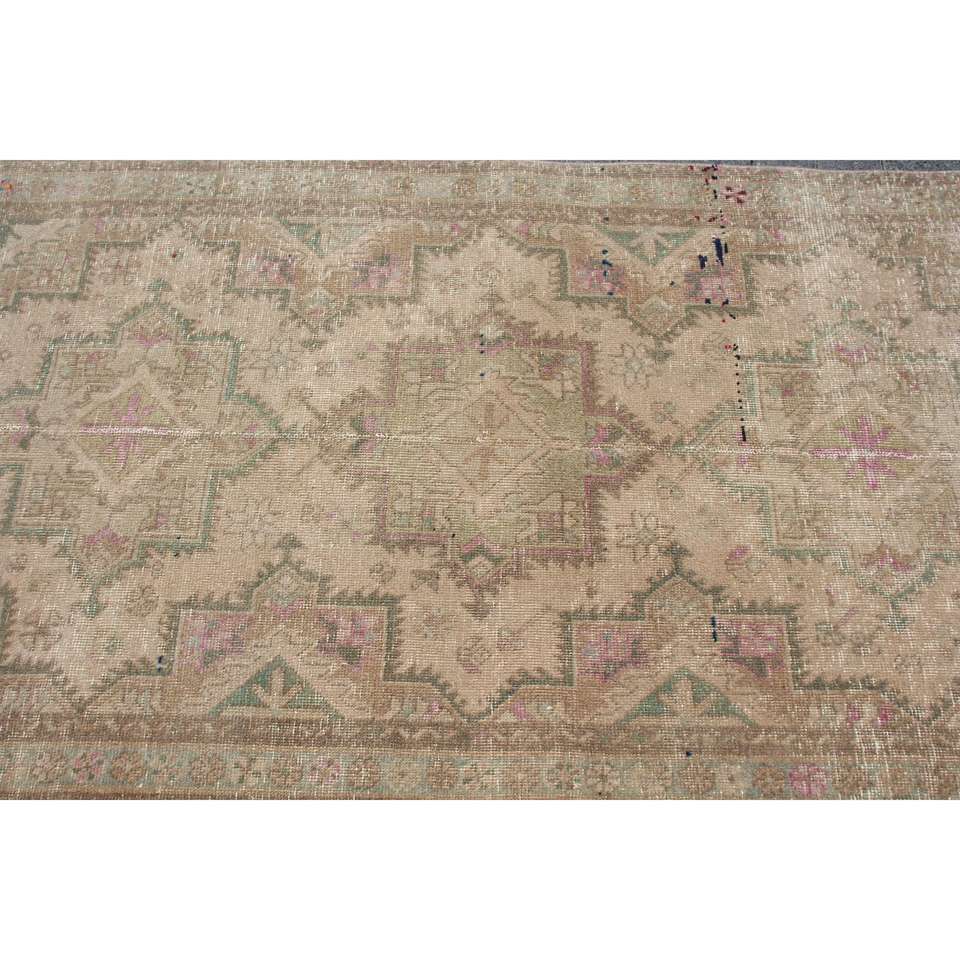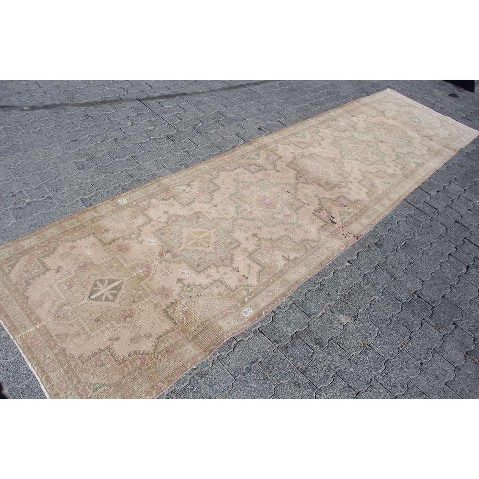 Turkish Rug, Runner 3.2x12.4 ft Vintage Rug, Brown Floral Wool Rug