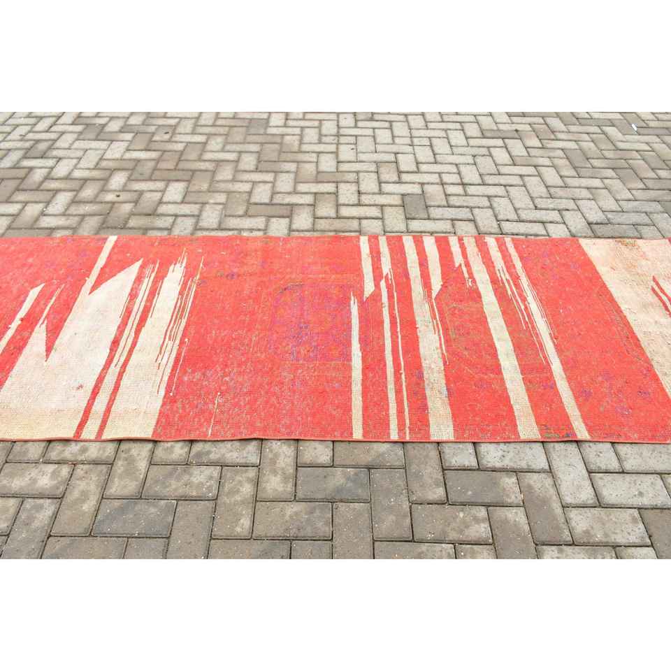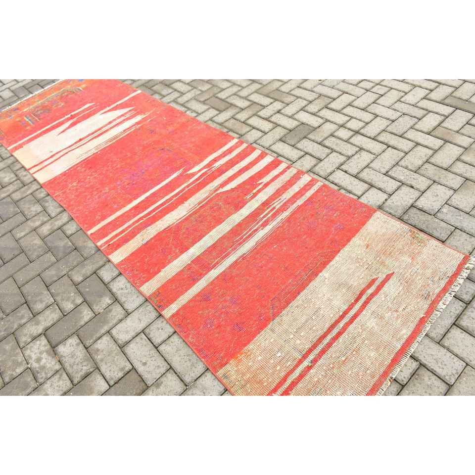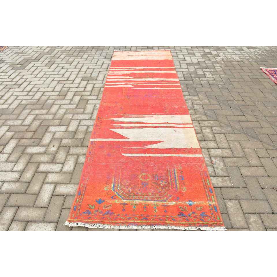 Turkish Rug, Runner 3.3x10.6 ft Rug, Red Ombr Rug