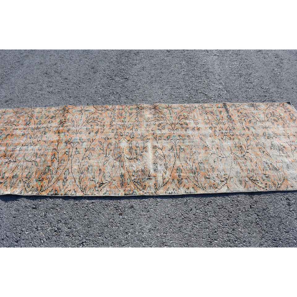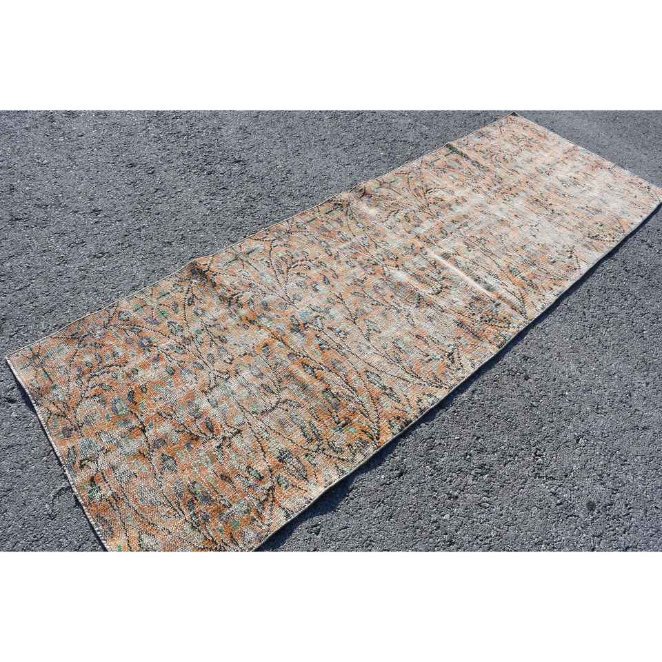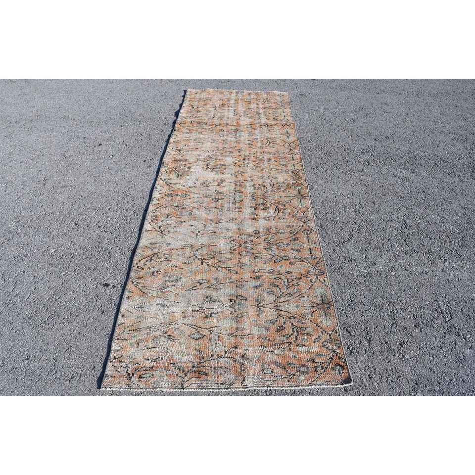 Turkish Rug, Runner 3x8.8 ft Rug, Brown Floral Rug