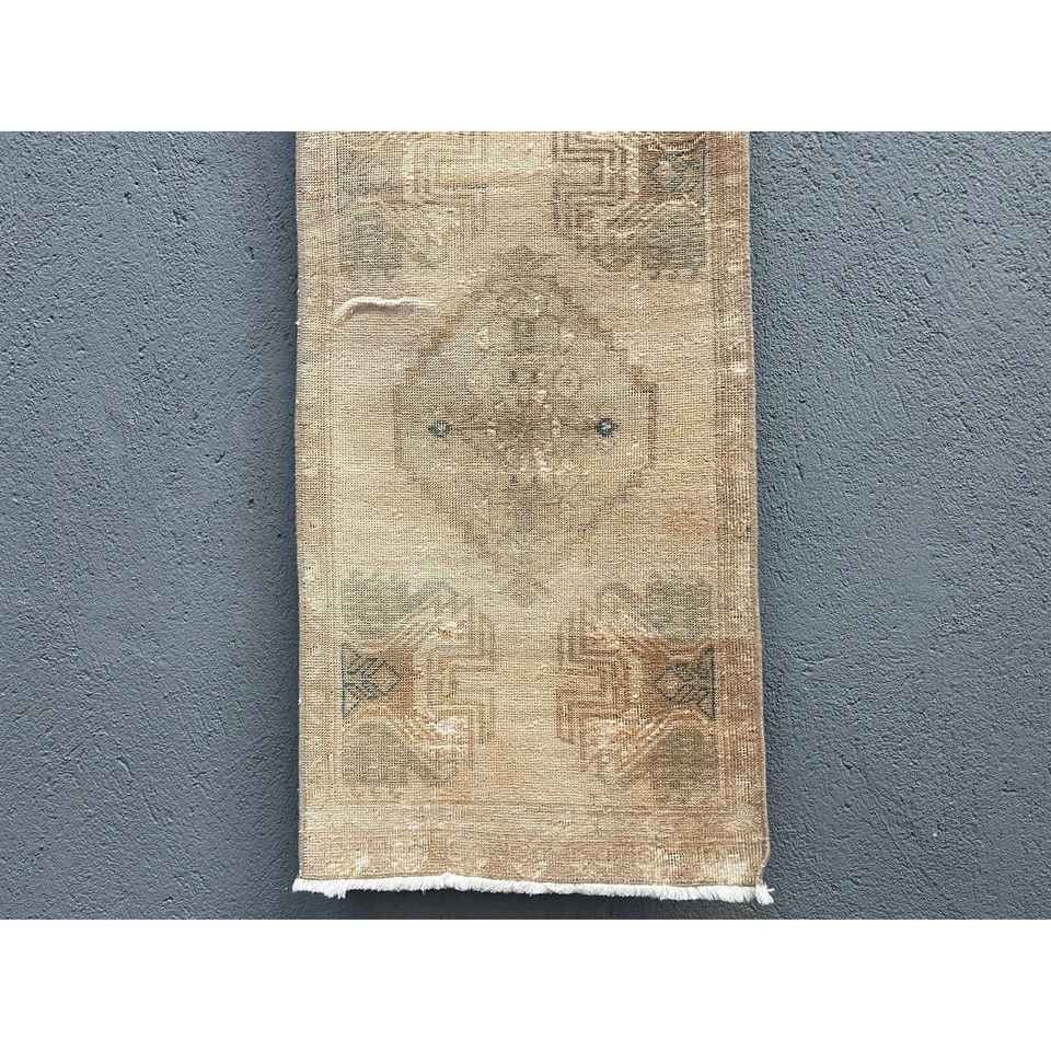 Turkish Rug, Small 1.6x3.2 ft Vintage Rug, Brown Blue Bordered Wool Rug