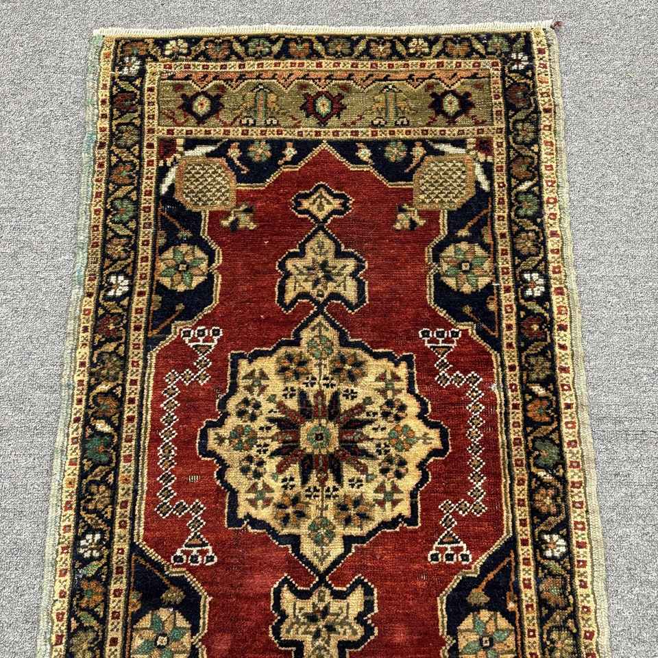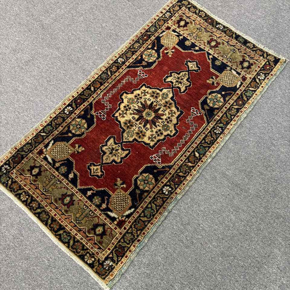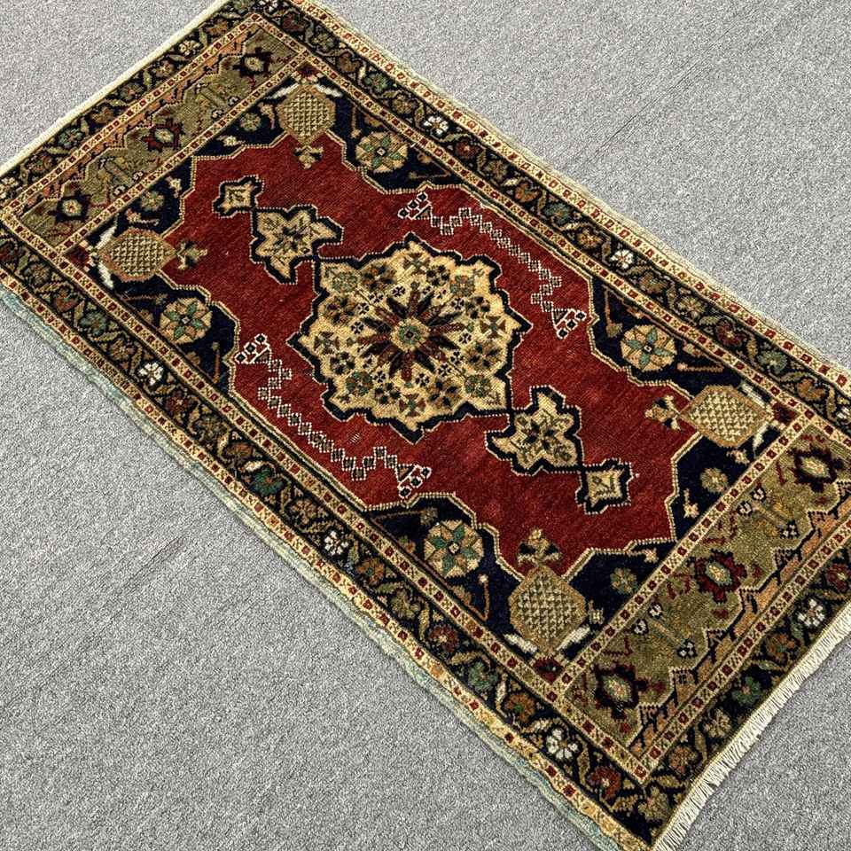 Turkish Rug, Small 1.7x3.2 ft Vintage Rug, Red Blue Plants & trees Wool Rug