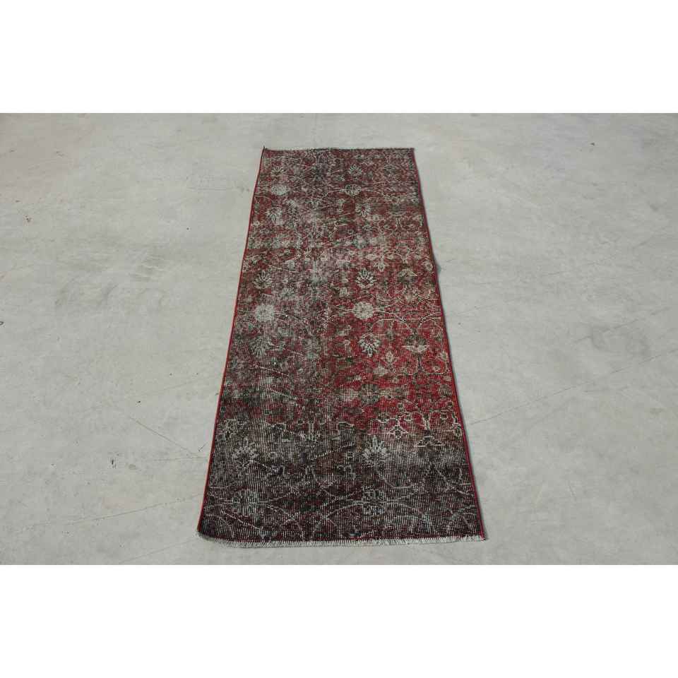 Turkish Runner Rug 2.1x5.6 ft (65x172 cm), Vintage Red Ombr Wool Rug