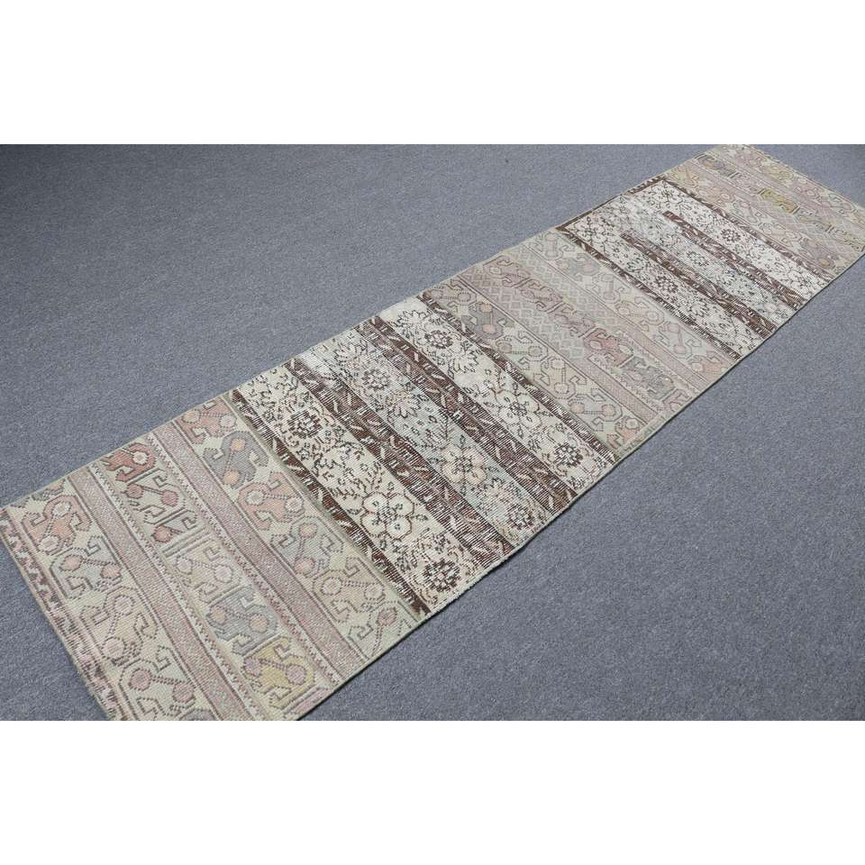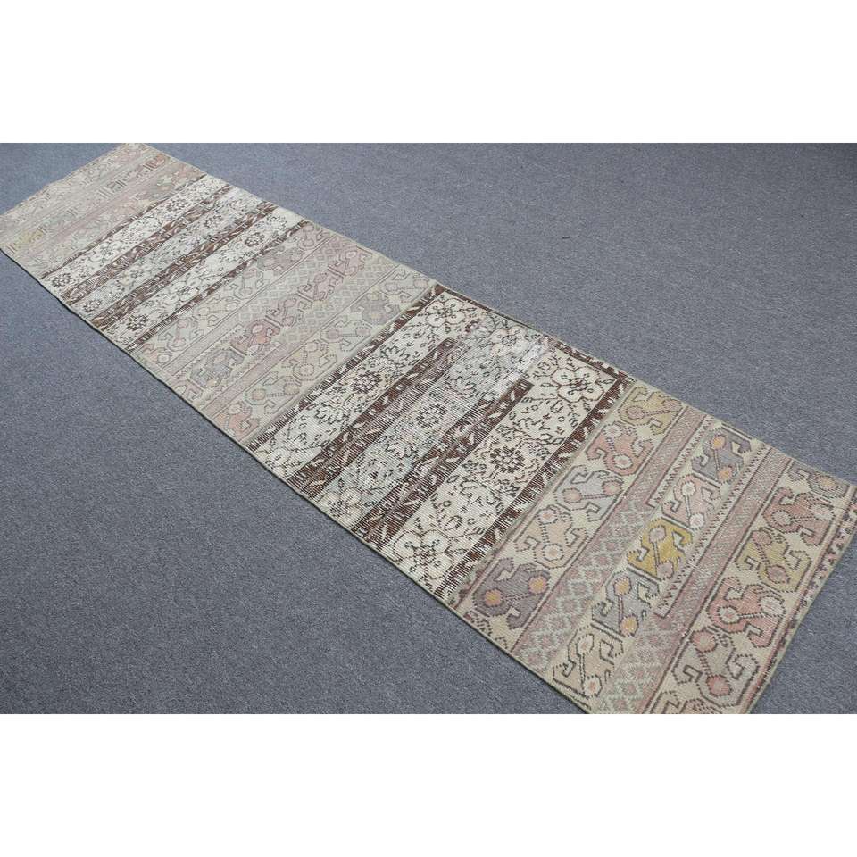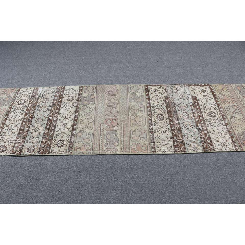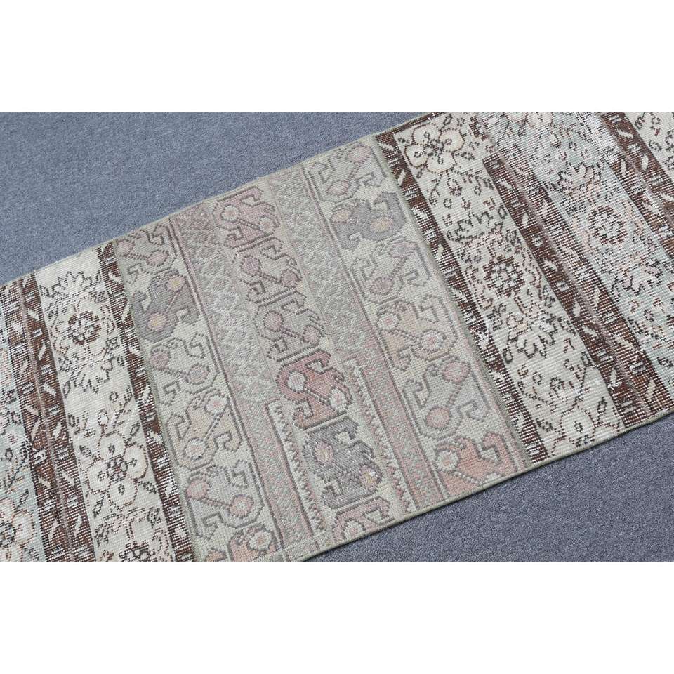 Turkish Runner Rug 2.3x9.3 ft, Vintage Brown Floral Wool Rug