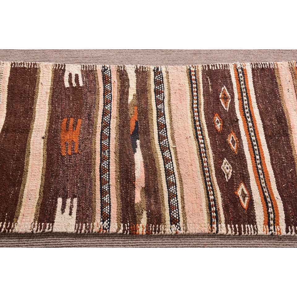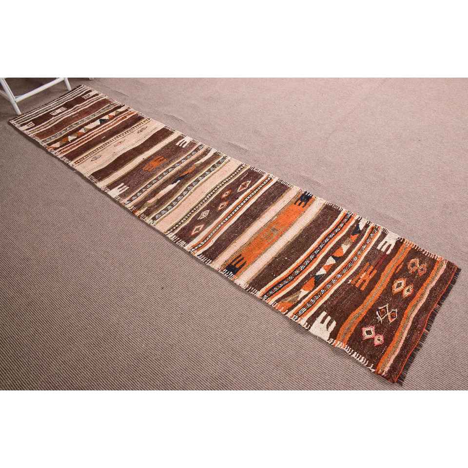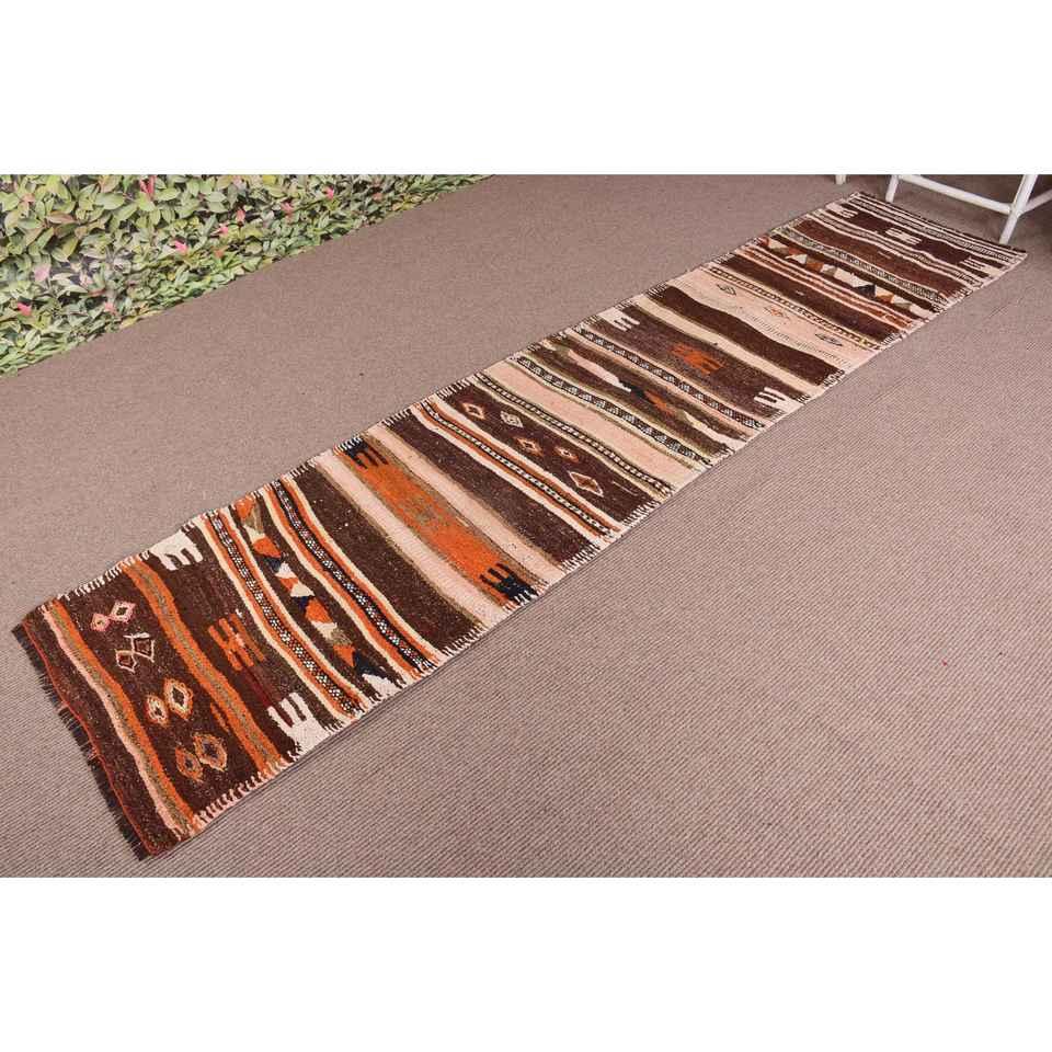 Turkish Runner Rug 2.4x10.4 ft (74x318 cm), Kilim Brown Ikat Vintage Rug