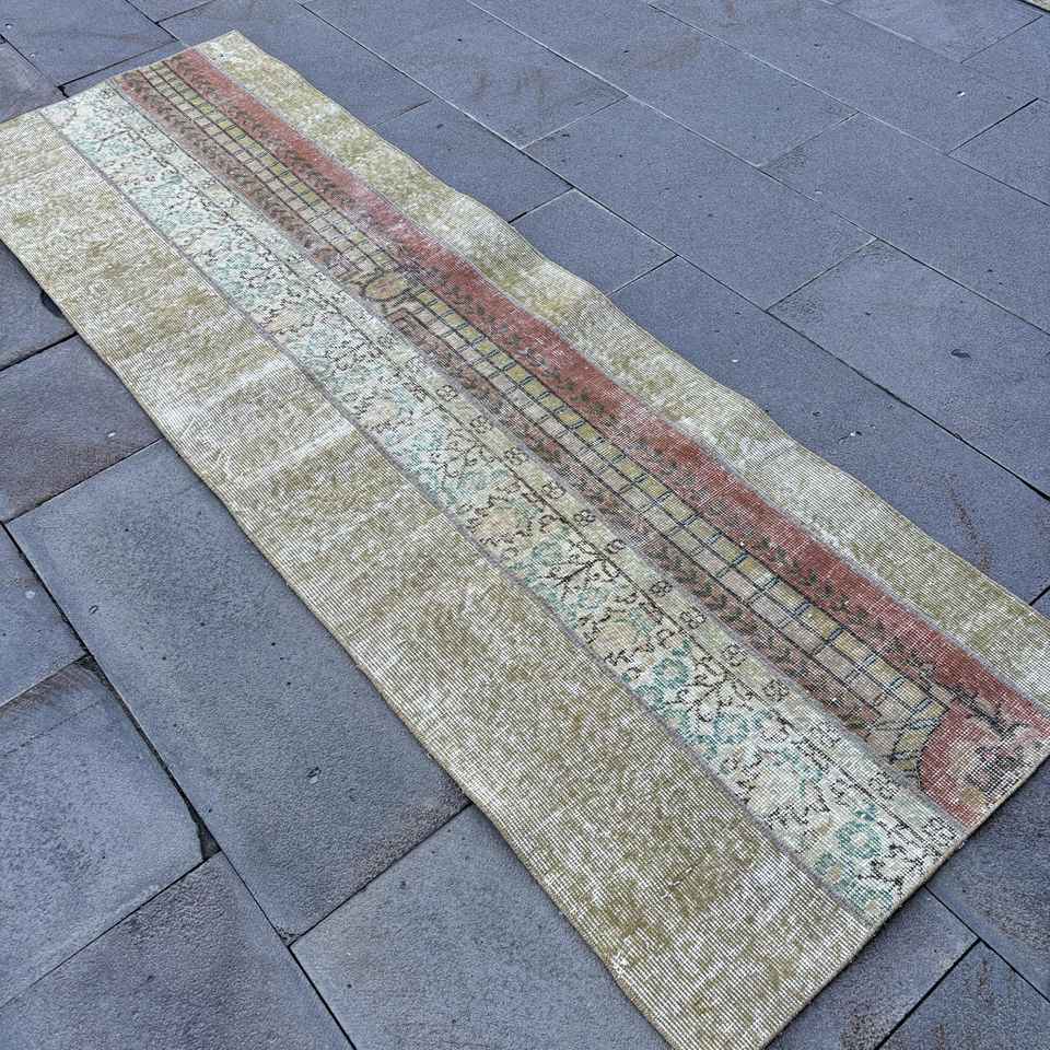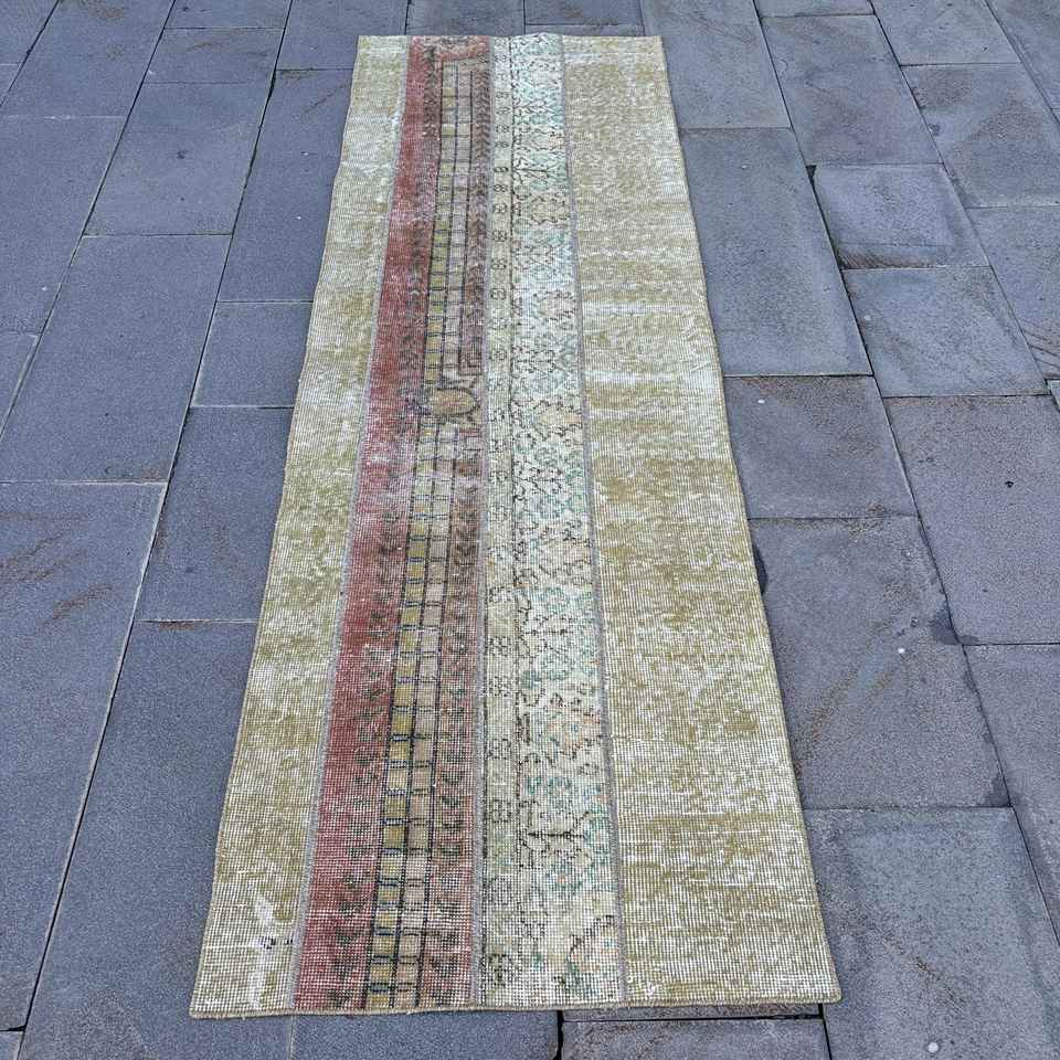 Turkish Runner Rug 2.4x7.6 ft (74x232 cm), Brown Solid Vintage Rug