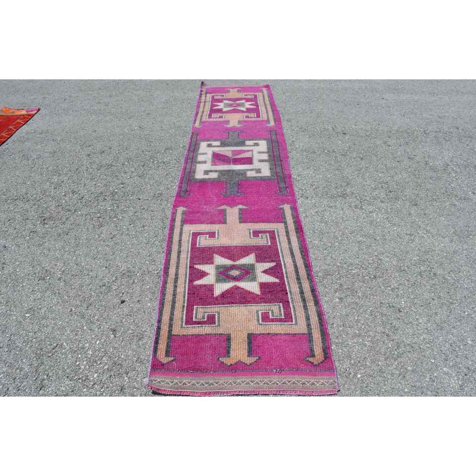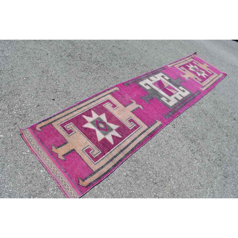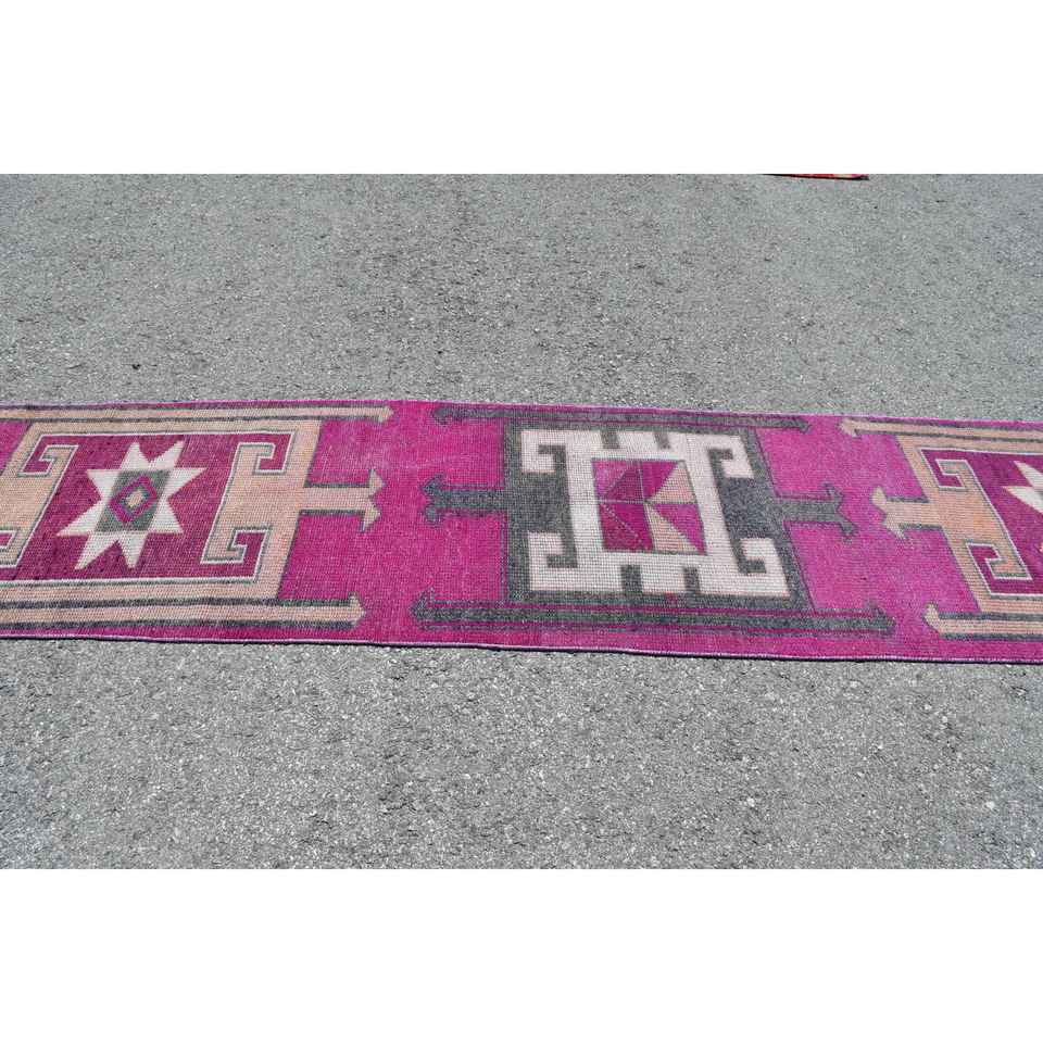 Turkish Runner Rug 2.5x11.9 ft, Red Gray Animal Print Rug Wool
