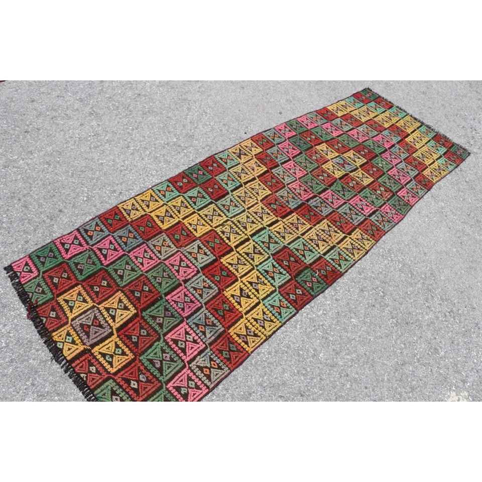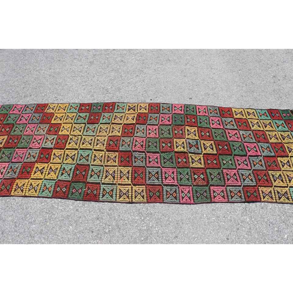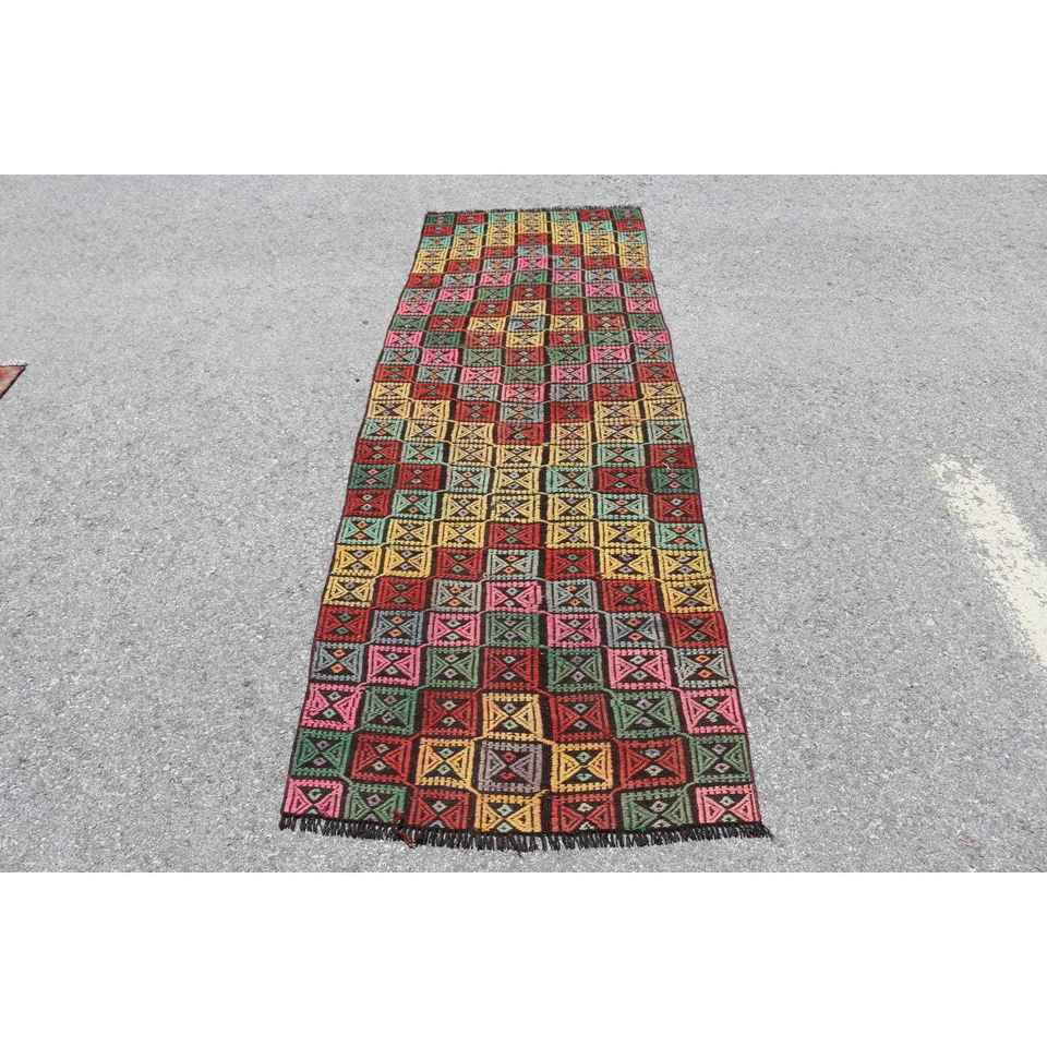 Turkish Runner Rug 2.6x7.8 ft, Red Green Oriental Rug Wool