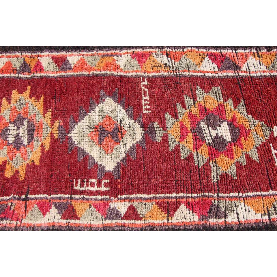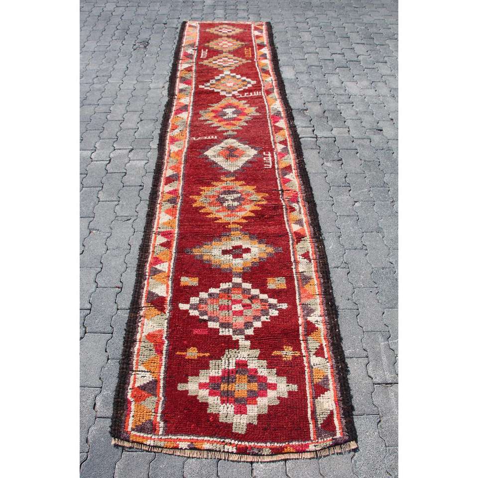 Turkish Runner Rug 2.7x11.5 ft, Red Floral Vintage Wool Rug
