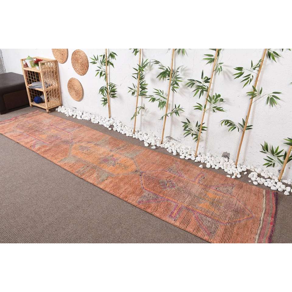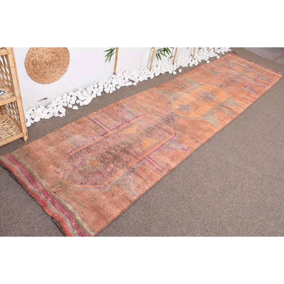 Turkish Runner Rug, 2.8x11.8 ft Vintage Rug, Orange Patchwork Wool Rug