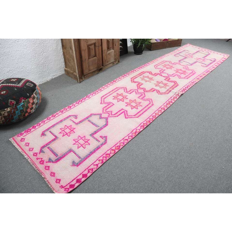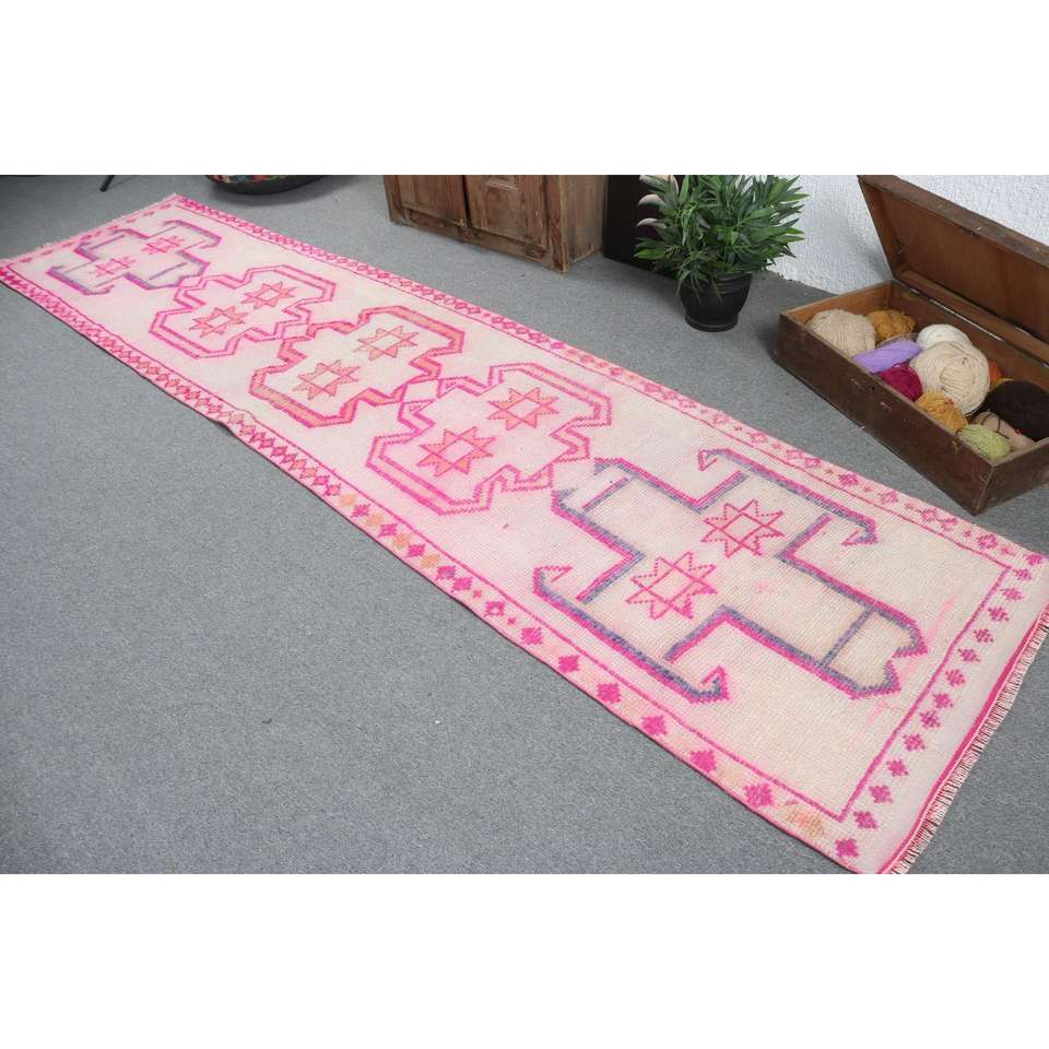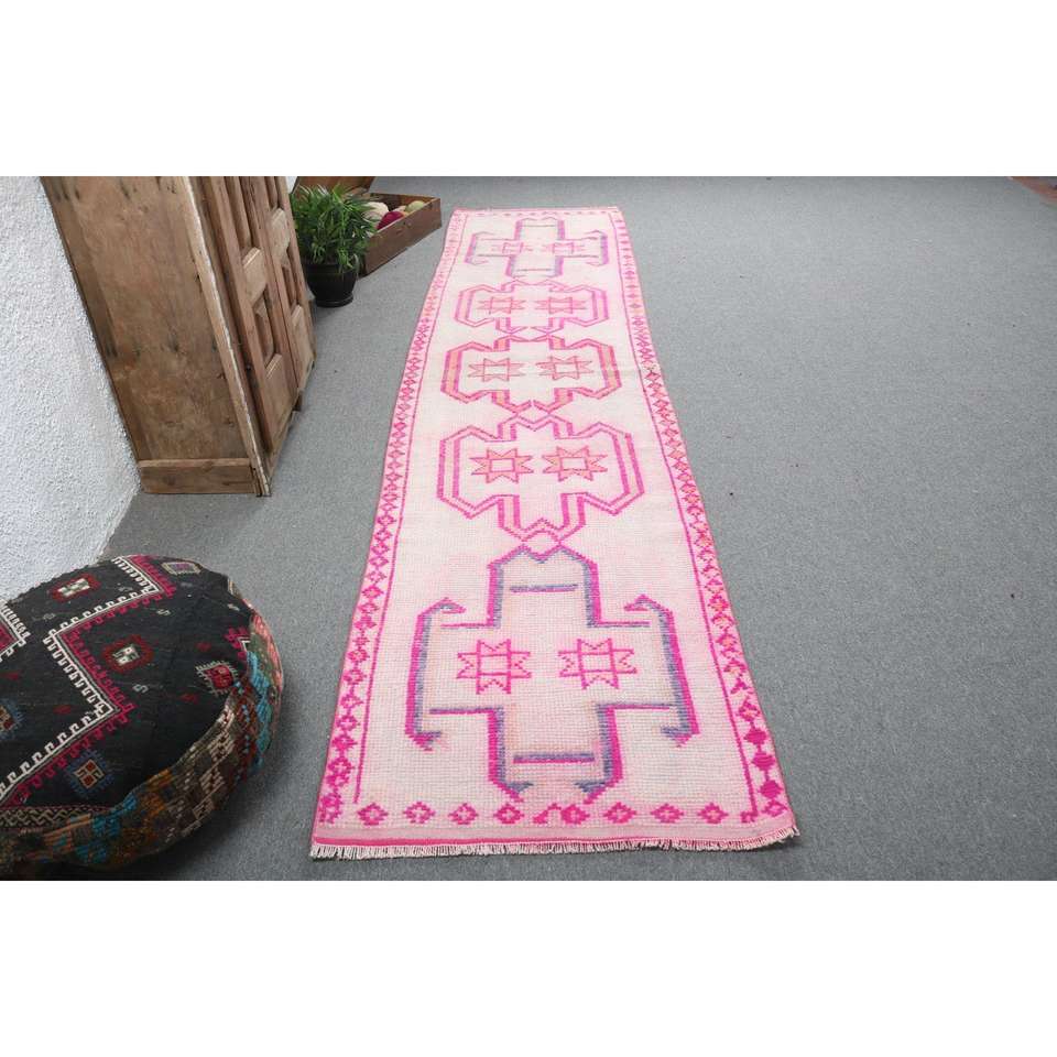 Turkish Runner Rug 2.8x12.1 ft, Vintage Herki Pink Ombr Wool Rug